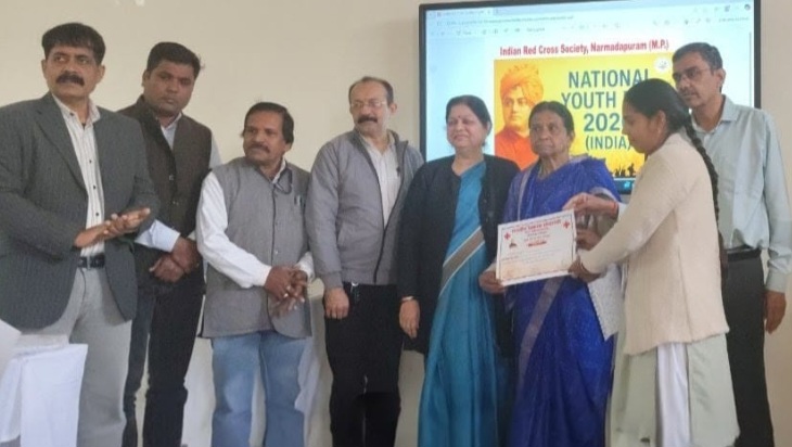नर्मदापुरम / नर्मदा एजुकेशन सोसाइटी कॉलेज ऑफ एजुकेशन नर्मदापुरम में भारतीय रेडक्रॉस समिति मध्य प्रदेश राज्य शाखा भोपाल के निर्देश के परिपालन में स्वामी विवेकानंद जयंती के अवसर पर सेवा सप्ताह का आयोजन किया जा रहा है। इस अवसर पर 7 जनवरी 2026 को रेड क्रॉस सोसाइटी के सेवा सप्ताह कार्यक्रम के अंतर्गत स्वामी विवेकानंद के जीवन दर्शन पर एक प्रेरणादायक भाषण कार्यक्रम का आयोजन किया गया। इस कार्यक्रम में मुख्य अतिथि के रूप में एन ई एस शिक्षा महाविद्यालय के प्रबंधक एवं जिला रेड क्रॉस अध्यक्ष अरुण शर्मा एवं श्रीमती अनीता दुबे, विपिन जैन आमीन रमिन और शेर सिंह कार्यकारिणी सदस्य रेड क्रॉस उपस्थित थे। कार्यक्रम की शुरुआत स्वामी विवेकानंद के छायाचित्र पर माल्यार्पण एवं दीप प्रज्वलन से हुई। महाविद्यालय के विभिन्न छात्र-छात्राओं ने अपने उद्बोधन में कहा कि स्वामी विवेकानंद का विश्वास था “उठो जागो और तब तक मत रुको जब तक की लक्ष्य प्राप्ति ना हो जाए”। उनके विचार आज भी युवाओं को आत्मनिर्भर, राष्ट्रभक्ति और चेतन बनाने की प्रेरणा देते हैं। कार्यक्रम में एन ई एस कॉलेज के छात्र शशांक एवं पंडित रामलाल शिक्षा महाविद्यालय से रोहिणी और एन ई एस शिक्षा महाविद्यालय के बीपीएड संकाय से तारा को पुरस्कृत किया गया। इस अवसर पर एन ई एस शिक्षा महाविद्यालय के प्राचार्य डॉ. ज्योत्सना खरे, उप प्राचार्य डॉ. संजय गार्गव, पंडित रामलाल शर्मा शिक्षा महाविद्यालय के प्राचार्य डॉ. प्रिंस जैन एवं दोनों महाविद्यालय का समस्त स्टाफ एवं विद्यार्थी भी उपस्थित थे।