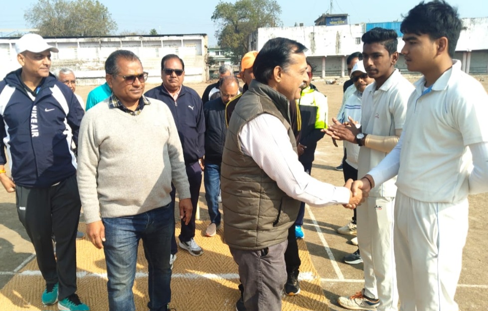 नर्मदापुरम / नर्मदापुरम संभाग क्रिकेट संघ के तत्वाधान में आयोजित इंटर स्कूल क्रिकेट प्रतियोगिता सांसद कप का शुभारंभ गुप्ता ग्रांउड स्टेडियम पर ज्वाइन डायरेक्टर एजुकेशन मनीष वर्मा द्वारा किया गया। प्रदीप सिंह तोमर ने बताया कि इस प्रतियोगिता में कुल आठ टीम हिस्सा लें रही है।जिसमें पहला मुकाबला आज जीनियस प्लानेट स्कूल इटारसी और सोना मेमोरियल स्कूल नर्मदापुरम के बीच 25 ओवर का मैच खेला गया। जिसमें जीनियस प्लानेट स्कूल इटारसी ने टॉस जीतकर पहले सोना मेमोरियल स्कूल नर्मदापुरम को बल्लेबाजी के लिए आमंत्रित किया। बल्लेबाजी करते हुए पीयूष कुशवाहा के 34 रनों की पारी की बदौलत सोना मेमोरियल 24 वे ओवर में महज 88 रनों पर ऑल आउट हो गई । जीनियस प्लानेट गेंदबाज वंश ने दो विकेट एवं स्वास्तिक और कार्तिक को एक एक विकेट मिला। 89 रनों के लक्ष्य का पीछा करने उतरी जीनियस प्लानेट बल्लेबाज आर्य और प्रणय के क्रमशः 38 और 21 रनों की मदद से मुकाबला एक तरफा जीत लिया। इस अवसर पर ज्वाइन डायरेक्टर एजुकेशन मनीष वर्मा, मध्य प्रदेश क्रिकेट एसोसिएशन प्रबंधक कार्यकारिणी सदस्य अनुराग मिश्रा, जिला क्रिकेट संघ अध्यक्ष राजेश चौरे, सचिव मनोहर बिल्थरिया, योगेश परसाई, संजय नाफ़डे , दिलीप नामदेव, अनंत तिवारी, भूपेंद्र वर्मा, सुनील कलोसिया, शैलेंद्र पवार, आकाश चौरे, करण वर्मा उपस्थित रहे। मैच के अंपायर उत्तम रघुवंशी एवं हरीश हनोतिया रहे, स्कोरर की भूमिका दिनेश वर्मा ने निभाई।