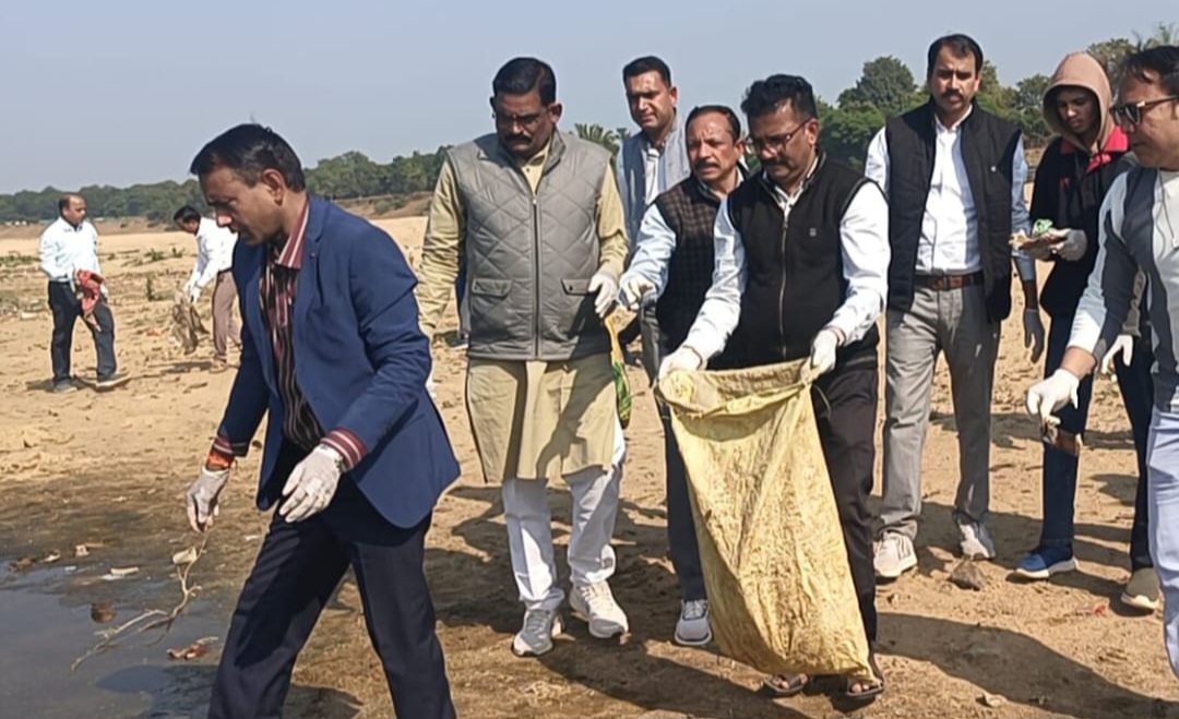 नर्मदापुरम / माँ नर्मदा की अविरल धारा और उसके तटों को स्वच्छ रखने के संकल्प के साथ आज नर्मदापुरम में एक विशेष स्वच्छता अभियान चलाया गया। बांद्रा बांध संगम स्थल पर आयोजित इस कार्यक्रम में शिक्षा विभाग के आला अधिकारियों और शिक्षक समुदाय ने मिलकर न केवल श्रमदान किया, बल्कि समाज को स्वच्छता के प्रति अपनी जिम्मेदारी निभाने का आह्वान भी किया।