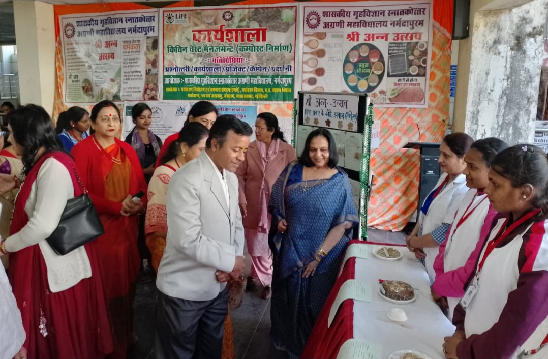 नर्मदापुरम / शासकीय गृहविज्ञान स्नातकोत्तर अग्रणी महाविद्यालय में दिनांक 13.01.2026 दिन मंगलवार को इको क्लब के माध्यम से श्री अन्न मेले का आयोजन किया गया। मेले में श्री अन्य से निर्मित विभिन्न व्यंजनों का प्रदर्शन किया गया। मेले में प्रथम सुपर फोर्स के संचालक नितेश तिवारी को विशेष रूप से आमंत्रित किया गया। जिनका विगत कई वर्षों से मोटे अनाज के विभिन्न उत्पादों का स्टार्टअप सफलतापूर्वक संचालित है। महाविद्यालय की प्राचार्य डॉ. श्रीमती कामिनी जैन ने बताया कि वर्तमान समय में मोटे अनाज का प्रचलन शहरों की ओर तेजी से बढ़ता जा रहा है। मेले में मोटे अनाज से निर्मित विभिन्न व्यंजनों के पोषणिक मूल्य भी बताए गए जिससे समाज में इन अनाजों के प्रति जागरूकता बढ़े। मोटा अनाज मानव जाति के लिए ज्ञात सबसे पुराने खाद्य पदार्थों में से एक है। यह महत्वपूर्ण इसलिए है कि इस शुष्क भूमि पर बहुत कम निवेश के साथ उगाया जा सकता है। इसकी खेती आत्मनिर्भरता बढ़ाने का उचित समाधान है। मेले की संयोजक डॉ. संगीता अहिरवार ने बताया कि मोटे अनाज स्वास्थ्य को उत्तम बनाने का एक बेहतरीन साधन सिद्ध हो सकते हैं।