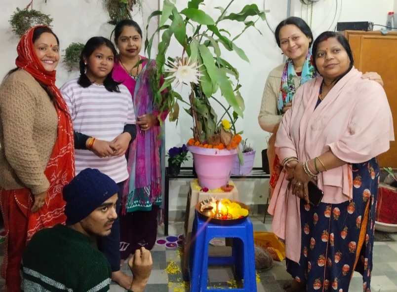 जैसे ही कॉलोनी में ब्रह्म कमल के एक ही साल में पांचवीं बार खिलने की सूचना फैली, श्रद्धालुओं और प्रकृति प्रेमियों का तांता लग गया। लोग इसे साक्षात भगवान ब्रह्मा का आशीर्वाद और चमत्कार मानकर दर्शन करने पहुँच रहे हैं। रात के अंधेरे में अपनी सफेद आभा बिखेरने वाले इस पुष्प की सुगंध ने पूरे परिसर को महका दिया है।