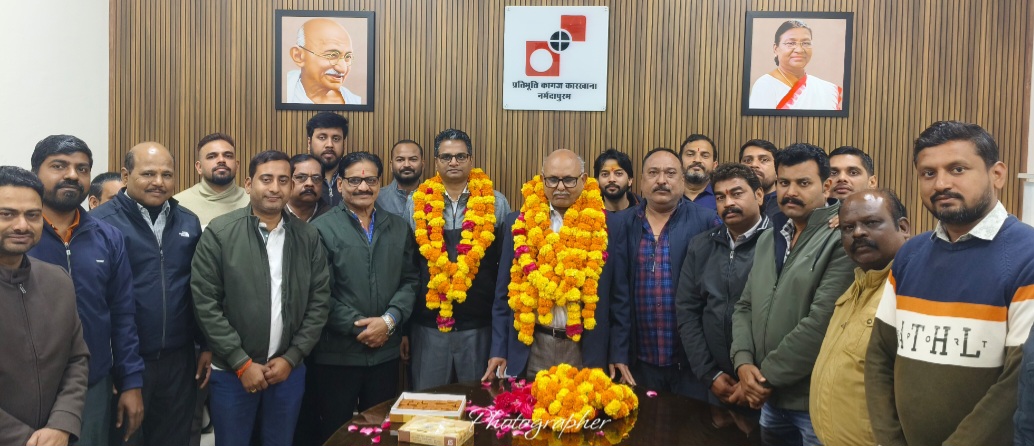 नर्मदापुरम / प्रधानमंत्री के आत्मनिर्भर भारत के विजन की दिशा में एसपीएम एसपीएम नर्मदापुरम को 6000 मीट्रिक टन वार्षिक उत्पादन क्षमता की नई पेपर मशीन की सौगात मिलने के उपलक्ष्य में BMS यूनियन के द्वारा समस्त कर्मचारियों की ओर से विजय रंजन सिंह अध्यक्ष एवं प्रबंध निदेशक (CMD), SPMCIL एवं इकाई प्रमुख वेकटेश कुमार, मुख्य महाप्रबंधक एवं अमित कुमार, अपर महाप्रबंधक को बधाई एवं आभार प्रस्तुत किया गया। इस उपलक्ष्य में प्रबंधन के द्वारा मिष्ठान वितरण किया गया। इस नई आधुनिक पेपर मशीन की स्थापना होने से एसपीएम में विभिन्न मूल्य वर्ग के बैंक नोट पेपर एवं स्टाम्प पेपर, पासपोर्ट पेपर, ऑल ओवर अशोका पिल्लर पेपर का गुणवत्ता पूर्ण उत्पादन होगा। आधुनिक मशीन की उत्पादन क्षमता अधिक होने से संस्थान के वार्षिक उत्पादन में वृद्धि होगी, जिससे देश की मांग की आपूर्ति होगी। साथ ही उत्पादन लागत मे भी कम होगी, जिससे प्रत्यक्ष रूप से निगम को आर्थिक लाभ प्राप्त होगा ।