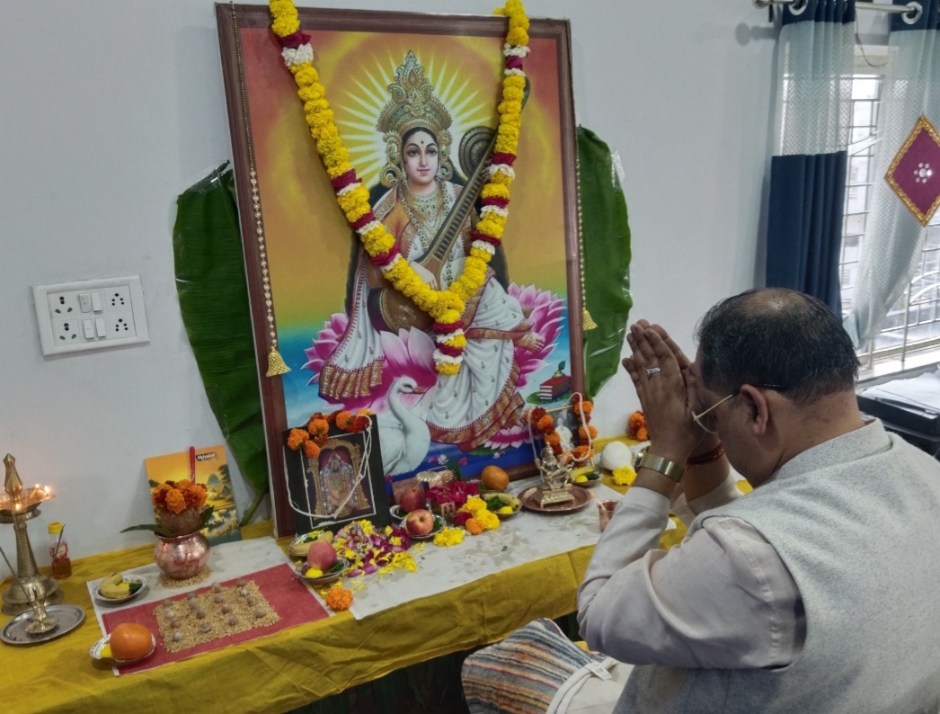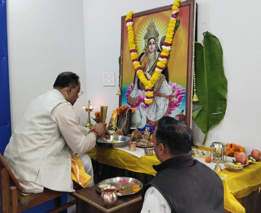 नर्मदापुरम / शुक्रवार को बसंत पंचमी के पावन अवसर पर द चैम्प्स फन स्कूल के रामायण हॉल में विद्या की देवी माँ सरस्वती की विधिवत पूजा-अर्चना का भव्य आयोजन किया गया। इस शुभ अवसर पर विद्यालय का संपूर्ण वातावरण श्रद्धा, भक्ति एवं सकारात्मक ऊर्जा से ओत-प्रोत रहा। इस धार्मिक आयोजन में विद्यालय के प्राचार्य डॉ. आशीष चटर्जी ने उनके मार्गदर्शन में माँ सरस्वती की पूजा सम्पन्न की। पूजा विधि का संचालन पंडित कुल्केश तिवारी द्वारा वैदिक मंत्रोच्चारण के साथ किया गया, पूजन के साथ हवन एवं पूर्णाहुति भी संपन्न कराई गई। कार्यक्रम में विद्यालय के सभी नन्हे-मुन्ने बच्चों ने पूरे श्रद्धा भाव के साथ सहभागिता की। बच्चों द्वारा सुमधुर स्वर में सरस्वती वंदना एवं गणेश वंदना प्रस्तुत की गई, जिससे पूरा वातावरण भक्तिमय हो गया। पूजा के दौरान बच्चों ने मंत्रोच्चारण किया तथा पूजा उपरांत प्रसाद ग्रहण किया। इस आयोजन का मुख्य उद्देश्य बच्चों को भारतीय संस्कृति, परंपराओं एवं संस्कारों से जोड़ना रहा। इस प्रकार के आयोजनों से बच्चों में ज्ञान, अनुशासन एवं सांस्कृतिक मूल्यों का विकास होता है। विद्यालय परिवार द्वारा आयोजित यह कार्यक्रम न केवल धार्मिक दृष्टि से बल्कि शैक्षिक एवं सांस्कृतिक रूप से भी अत्यंत प्रेरणादायक सिद्ध हुआ।