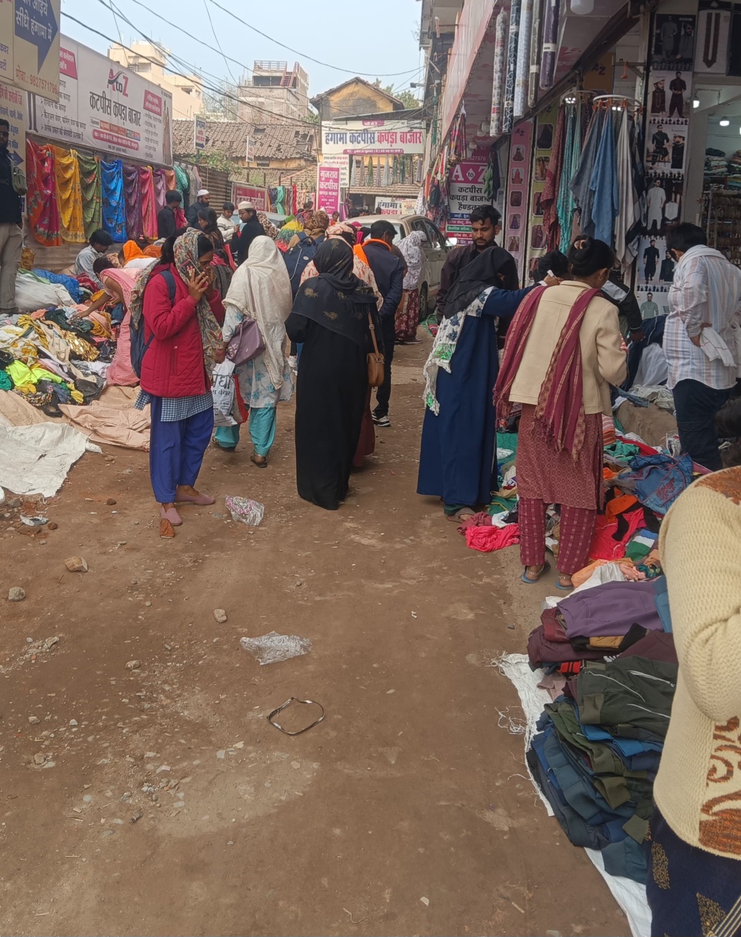 गली के फुटपाथ पर ₹100 में दो साड़ियाँ, चादरें, स्वेटर और कंबल जैसे सामानों की सेल लगी है। सस्ते दामों के चलते सुबह 10 बजे से ही यहाँ ‘मेले’ जैसा माहौल बन जाता है। स्थिति यह है कि फुटपाथ पूरी तरह गायब हो चुका है और लोग सड़क पर चलने को मजबूर हैं। सबसे अधिक चिंताजनक बात यह है कि यहाँ महिलाओं की भारी भीड़ जुट रही है, जिससे सुरक्षा व्यवस्था चरमरा गई है।