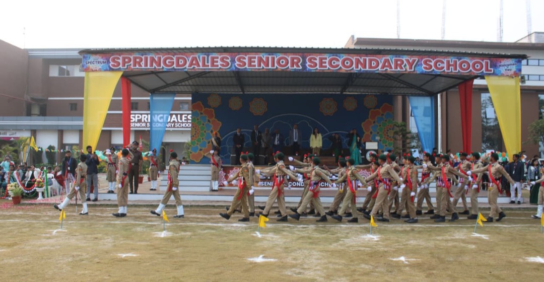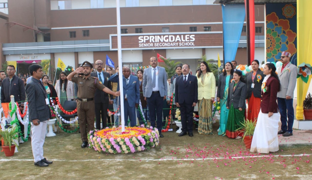 नर्मदापुरम / स्प्रिंगडेल्स सीनियर सेकेण्डरी स्कूल परिसर में 77वाँ गणतंत्र दिवस अत्यंत हर्षोल्लास, गरिमा एवं राष्ट्रभक्ति के वातावरण में मनाया गया। स्प्रिंगडेल्स सीनियर सेकेण्डरी स्कूल एवं द चैम्प्स फन स्कूल के संयुक्त तत्वावधान में आयोजित इस समारोह का शुभारंभ प्रातः 8:00 बजे मुख्य अतिथि पी. के. चटर्जी द्वारा ध्वज फहराने एवं राष्ट्रगान के साथ किया गया। इस अवसर पर विशिष्ट अतिथि कर्नल श्री एस. पी. सिंह, 13 एम. पी. बटालियन एनसीसी विशिष्ट अतिथि के रूप में उपस्थित रहे। इस अवसर पर डायरेक्टर्स डॉ. आशीष चटर्जी, सुभाशीष चटर्जी, श्रीमती जूही चटर्जी, प्राचार्य श्रीमती मोना चटर्जी, जनरल मैनेजर श्रीमती सोनल सोखी, द चैम्प्स फन स्कूल कोर्डिनेटर श्रीमती रीना मालवीय, उप प्राचार्य श्रीमती लक्ष्मी पलोहिया सहित दोनों स्कूल के शिक्षक-शिक्षिकाएँ, विद्यार्थी एवं बड़ी संख्या में उपस्थित दोनों विद्यालयों के अभिभावकगणों ने सामूहिक राष्ट्रगान गाकर तिरंगे को सलामी दी।