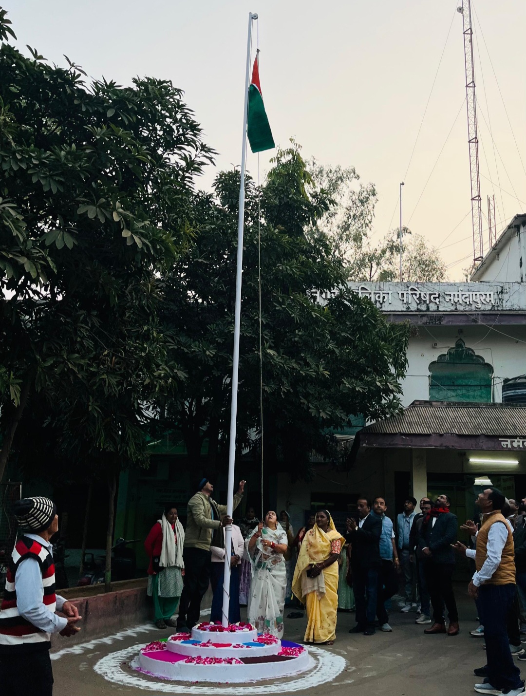 नर्मदापुरम / नगरपालिका में गणतंत्र दिवस हर्षोल्लास के साथ मनाया गया। नपाध्यक्ष नीतू महेंद्र यादव द्वारा झंडा वंदन किया गया। इस अवसर पर मुख्य नगरपालिका अधिकारी हेमेश्वरी पटले, कार्यालय अधीक्षक योगेश सोनी, नपा के उपयंत्री एवं पार्षद सभापतिगण और नगरपालिका परिषद के अधिकारी कर्मचारी उपस्थित थे। नगरपालिका में झंडा वंदन करने के बाद नपाध्यक्ष श्रीमती यादव और मुख्य नगरपालिका अधिकार श्रीमती पटले द्वारा जिला अस्पताल के सामने स्थित गांधी पार्क पहुंचकर महात्मा गांधीजी की प्रतिमा पर पुष्पमाला अर्पित की ।
