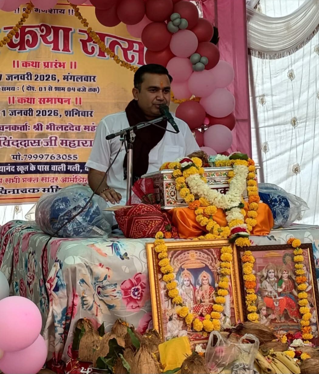 सिवनी मालवा / भामाशाह मार्ग वार्ड नंबर 9 में चल रही राम कथा सत्संग का आज चतुर्थ दिवस संपन्न हुआ। जिसमें ज्ञान भक्ति वैराग्य से इस जीव का उद्धार होता है। वह मनुष्य धन्य है जिसका मन भगवान के श्री चरणों में लगता है। जिनका मन कथा और सत्संग में लगता है, वह मनुष्य की जिव्या धन्य है जो हरि भजन करती है। उस जीव के पद धन्य है जो मंदिर की ओर सत्संग की और परमार्थ की ओर बढ़ते हैं। शुक्रवार को राम कथा सत्संग का चतुर्थ दिवस संपन्न हुआ। यह कथा 27 जनवरी से 31 जनवरी तक सिवनी मालवा के वार्ड नंबर 9 में सिध्दीविनायक महिला मंडल द्वारा आयोजित की जा रही है। कल 31 जनवरी को कथा का विराम दिवस है। कल की कथा दोपहर 12:00 बजे से दोपहर 2:30 बजे तक चलेगी। आयोजक मंडल ने सभी नगर वासियों से इस पावन कथा में विश्राम दिवस पर सम्मिलित होने के लिए आग्रह किया है। कथा में नित्य बड़ी संख्या में नगर वासी सम्मिलित हो रहे हैं। कथा व्यास सनातन की महिमा को जन-जन तक पहुंचने वाले अपनी सरल और सहज वाणी से महंत गोविंद दास भीलट देव मंदिर अपनी मधुर वाणी से राम कथा श्रवण करा रहे हैं और राम कथा सुन जीवन धन्य कर रहे हैं नगर वासी।