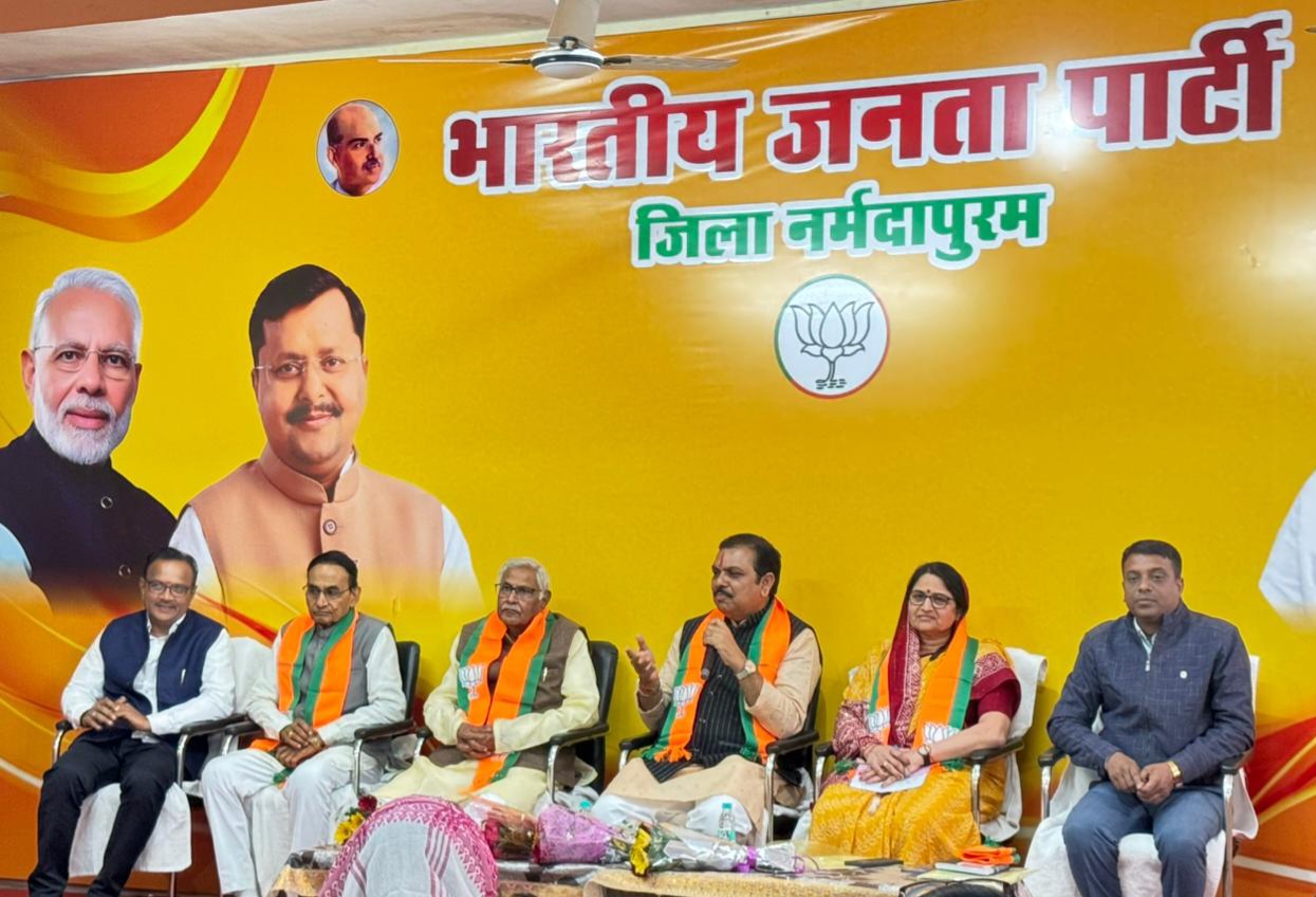 बजट प्रसारण के पश्चात भाजपा जिला कार्यालय में संगठनात्मक बैठक का आयोजन किया गया, बैठक में भाजपा जिला अध्यक्ष प्रीति शुक्ला ने आगामी कार्यक्रमों के बारे में विस्तार से बताया। संभागीय प्रभारी कांतदेव सिंह ने संगठन की रीति-नीति, अनुशासन एवं कार्यकर्ताओं के दायित्वों पर मार्गदर्शन देते हुए पूर्व कार्यक्रमों की समीक्षा की। बैठक में भाजपा जिला अध्यक्ष प्रीति शुक्ला ने कहा कि भाजपा की सबसे बड़ी शक्ति उसका समर्पित कार्यकर्ता है, जो विचारधारा के आधार पर राष्ट्रहित में कार्य करता है। उन्होंने आगामी कार्यक्रमों की कार्ययोजना पर चर्चा करते हुए बूथ स्तर तक संगठन को और अधिक सशक्त बनाने का आह्वान किया। इस दौरान भाजपा प्रदेश उपाध्यक्ष, नर्मदापुरम संभाग प्रभारी कांतदेव सिंह, भाजपा जिला अध्यक्ष प्रीति शुक्ला, विधायक डॉ. सीतासरन शर्मा, प्रेमशंकर वर्मा, ठा.विजयपाल सिंह, जिला महामंत्री मुकेश चंद्र मैना, ज्योति चौरे, शंभू सोनकिया, भरतसिंह राजपूत, विवेक गौर, जिला उपाध्यक्ष लोकेश तिवारी, राजेश गौर, गोपालदास दूदानी, मंत्री प्रांशु राने, गोविंद राय, रीता ठाकुर, संदीप जैन, प्रशांत दीक्षित, वंदना दुबे, अमित महाला, राजा तिवारी, राहुल पटवा, गजेन्द्र चौहान, राहुल ठाकुर, महेन्द्र यादव, रूपेश राजपूत, नंदू यादव, राहुल चौरे, मयंक मेहतो, प्रदीप पटेल, मनीष चतुर्वेदी, विनय यादव, योगेश मालवीय, विपिन यादव, बलराम ठाकुर, छोटेसाहब पटेल, पवन झा, भागवती पटेल, वरूणसिंह रघुवंशी, नीरज तिवारी, धर्मेन्द्र गुर्जर, सुनील गौर, सुशील बरखड़े, दीपेन्द्र राजपूत कृतिक शिवहरे, मुन्ना ग्वाला, दुर्गेश राजपूत, पंकज चौहान उपस्थित रहे।
