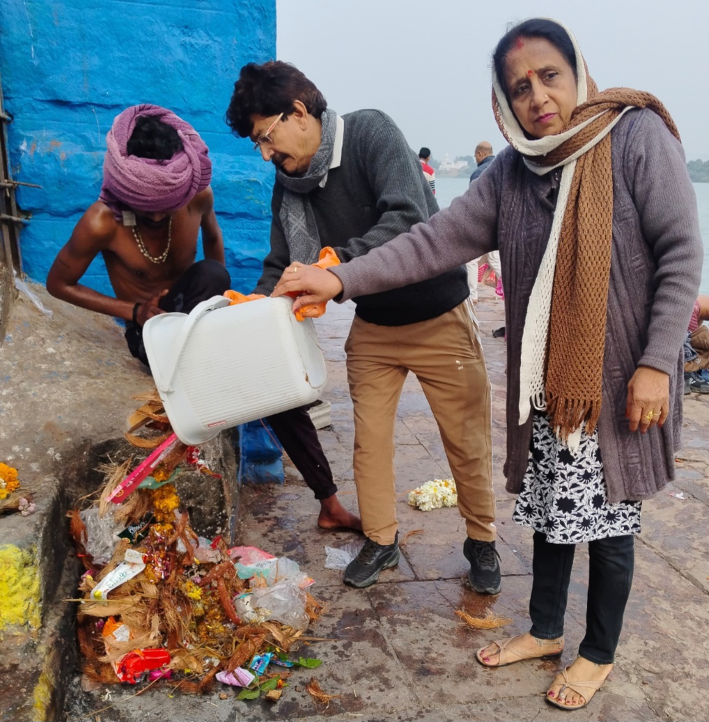 नर्मदा जयंती के दौरान भक्तों द्वारा अर्पित की गई फूल-मालाओं के साथ-साथ भारी मात्रा में पॉलीथिन, प्लास्टिक के डिस्पोजल और पूजन सामग्री के साथ आए प्लास्टिक के सामान जो किनारों पर जमा हो गए थे, उन्हें मातृशक्ति और समाज के अन्य सदस्यों ने हाथों से चुनकर निकाला। समाज के सदस्यों ने चिंता व्यक्त की कि प्लास्टिक न केवल जल को प्रदूषित करता है बल्कि जलीय जीवों के लिए भी घातक है। घाट की फर्श को झाड़ू लगाकर स्वच्छ किया गया और समस्त कचरे व प्लास्टिक अपशिष्ट को डस्टबिन के माध्यम से उचित निपटान हेतु भेजा गया।