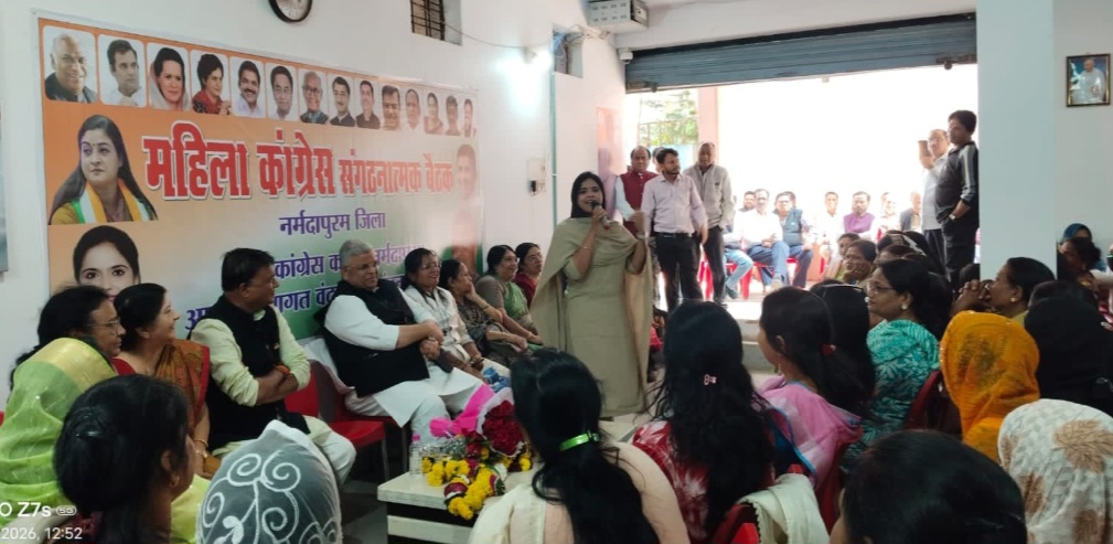 नर्मदापुरम / मध्य प्रदेश महिला कांग्रेस की प्रदेश अध्यक्ष रीना बौरासी एक दिवसीय दौरे पर आज नर्मदा पुरम जिले के इटारसी नगर पहुंची। जहां उन्होंने जिला कांग्रेस कार्यालय में उपस्थित नर्मदापुरम जिले की मातृशक्तियों की एक संगठनात्मक बैठक ली। सर्वप्रथम जिला कांग्रेस कार्यालय में प्रदेश महिला कांग्रेस अध्यक्ष रीना बौरासी का जिला कांग्रेस कमेटी के अध्यक्ष शिवाकांत गुड्डन पांडेय द्वारा नर्मदापुरम जिले की ओर से गुलदस्ता भेंटकर स्वागत किया गया। तत्पश्चात स्वागत उद्बोधन नगर कांग्रेस अध्यक्ष कन्हैया गोस्वामी द्वारा दिया गया। इसी क्रम में जिला कांग्रेस अध्यक्ष शिवाकांत गुड्डन पांडे ने मातृशक्ति माताएं बहनों को संबोधित करते हुए निवेदन किया कि माताएं बहने अधिक से अधिक संख्या में अपने घरों से बाहर निकलकर कांग्रेस पार्टी का साथ दें ताकि आने वाले समय में हम संगठन को जिले में और मजबूती के साथ खड़ा कर सकें। जिससे भविष्य में कांग्रेस की सरकार बने। हम अपने बच्चों को अच्छी से अच्छी शिक्षा और रोजगार उपलब्ध करा सके। मध्य प्रदेश महिला कांग्रेस की अध्यक्ष रीना बौरासी ने सभा को संबोधित करते हुए विशेष रूप से महिलाओं के स्वास्थ्य एवं सुरक्षा पर चिंता व्यक्त की। उन्होंने कहा कि सरकार बनने पर हमारा लक्ष्य स्वास्थ्य सेवाओं पर विशेष ध्यान देना एवं महिलाओं के लिए निशुल्क स्वास्थ्य सेवा प्रदान करना होगा। प्रदेश में युवा वर्ग को रोजगार प्रदान करना, महिलाओं को आर्थिक रूप से मजबूत करना जैसे मुद्दों को उन्होंने प्रमुखता से अपने संबोधन में स्थान दिया और आगे उन्होंने संबोधित करते हुए कहा हम सब अपने मिशन में तभी कामयाब होंगे जब हम अपने घरों से बाहर निकल कर कांग्रेस पार्टी को सहयोग प्रदान करेंगे। महिलाओं को 33% आरक्षण मिलने पर आने वाले समय में आप में से कोई नगर पालिका अध्यक्ष तो कोई विधायक कोई सांसद भी हो सकता है। आप सभी को आपके अपने जिले में जिला कांग्रेस अध्यक्ष शिवाकांत गुड्डन पांडेय को सहयोग करते हुए प्रदेश में जीतू पटवारी का हाथ मजबूर करना है और 2028 में प्रदेश में कांग्रेस की सरकार बनाना एवं 2029 में केंद्र में कांग्रेस के प्रधानमंत्री बनाना हमारा लक्ष्य है ।इसमें आप सभी की सहभागिता आवश्यक है। कार्यक्रम का संचालन जिला कांग्रेस प्रवक्ता अनिल रैकवार ने किया एवं आभार माखन नगर पंचायत उपाध्यक्ष राशिका डेरिया ने किया। कार्यक्रम में विशेष रूप से महिला नेत्रीगण एवं कांग्रेस कार्यकर्त्ता उपस्थित थे। यह जानकारी जिला कांग्रेस प्रवक्ता अनिल रैकवार द्वारा दी गई