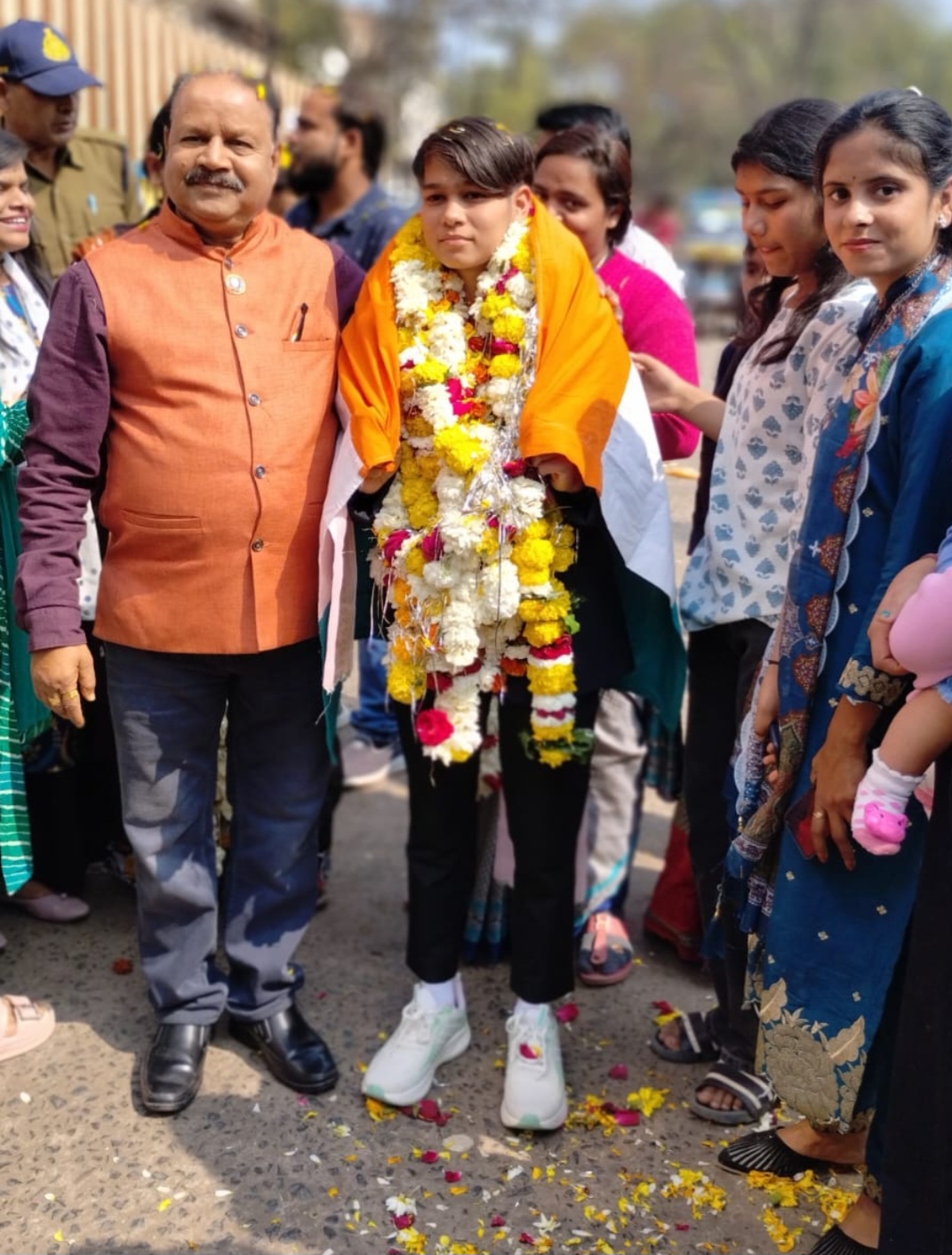 विदिशा / वर्ल्ड कप में भारतीय शूटिंग बॉल टीम को विश्व विजेता बनाने वाली राष्ट्र की गौरव, विदिशा की शान विदिशा की इशिका मीना का गुरुवार को नगर में जोरदार स्वागत हुआ। हुआ। रेलवे स्टेशन पहुंचते ही इशिका मां सिद्धेश्वरी दरबार पहुंचीं और मत्था टेका। जहां पर लायंस साथी ने पहुंचकर उनका जोरदार स्वागत किया। पूर्व डिस्ट्रिक्ट गवर्नर एमजेएफ लायन अतुल शाह एवं मल्टीपल तथा डिस्ट्रिक्ट सह मल्टीमीडिया प्रभारी लायन अरुण कुमार सोनी प्यारी बिटिया को पुष्पमाला पहनाकर आशीर्वाद देकर उसको शुभकामनाएं प्रदान की और उसके उज्जवल भविष्य की कामना की। व्यापार मंडल से राजेश कुमार जैन ने भी बिटिया को फूलों का हार पहना कर जोरदार स्वागत किया। उसको आशीर्वाद देते हुए शुभकामनाएं प्रदान की । उसके स्वागत में नगर में कई स्थानों पर तोरणद्वार लगाए गए। सामाजिक और व्यापारिक संगठनों के पदाधिकारियों ने उनका अभिनंदन किया। इशिका खुली गाड़ी में तिरंगा थामे जुलूस में शामिल हुईं। बच्चों और बैंड के साथ यह जुलूस नगर के प्रमुख मार्गों से होते हुए बरईपुरा चौराहा तक पहुंचा। लोगों ने हाथों में तिरंगा लेकर उसका जयकारों के साथ जोरदार स्वागत किया। इस अवसर पर वी टीच कान्वेंट स्कूल के मंच पर इशिका के कोच जितेन्द्र बघेल का भी सम्मान किया गया। इशिका ने इसी स्कूल में बच्चों को खेलों की ट्रेनिंग दी है।इशिका महारानी लक्ष्मीबाई कन्या उच्चतर माध्यमिक विद्यालय विदिशा की छात्रा रही हैं। वर्तमान में बरकतउल्ला विश्वविद्यालय से बीपीईएस स्नातक और बीपीएड की पढ़ाई कर रही हैं। उनके नाम 11 राष्ट्रीय प्रतियोगिताओं में भाग लेने का अनुभव है। इशिका ने बताया कि पढ़ाई और खेल में परिवार का सहयोग हमेशा मिला। यही उनकी सफलता का कारण बना। जिसके कारण आज वह इस उपलब्धि तक पहुंची है। कोच जितेन्द्र बघेल ने अंशिका की तारीफ करते हुए बताया कि इशिका की मेहनत और अनुशासन ने टीम को जीत दिलाई। उनकी इस स्वर्णिम सफलता ने विदिशा को विश्व पटल पर गौरवान्वित किया। नगर के गढ़ मान्य लोगों ने उनको बधाई एवं शुभकामनाएं प्रदान की।