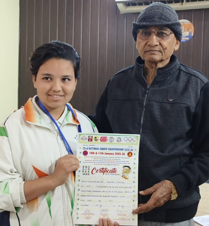 यह भी अत्यंत हर्ष का विषय है कि चंचल जिनोदिया का चयन नेपाल में 17 से 18 फरवरी 2026 को आयोजित होने वाली अंतरराष्ट्रीय कराटे प्रतियोगिता के लिए हुआ है। विधायक प्रेमशंकर वर्मा ने उन्हें शुभकामनाएं देते हुए आशा व्यक्त की कि वह अंतरराष्ट्रीय मंच पर भी प्रदेश और देश का नाम गौरवान्वित करेंगी।