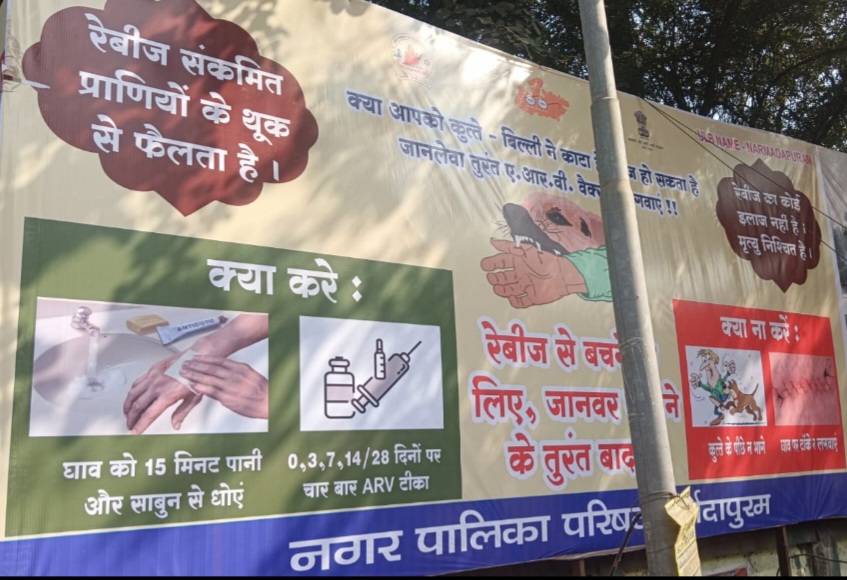 नर्मदापुरम / शासन के निर्देश अनुसार नगर के आवारा कुत्तों को लेकर नगरपालिका अलर्ट मोड में आ गई है। आवारा कुत्तों से नागरिकों को बचाने के लिए नगर में युद्धस्तर पर जनजागरूकता अभियान चलाया जा रहा है। चौक चौराहों पर बैनर्स पोस्टर लगाए गए हैं। साथ ही आवारा कुत्तों के काटने से बचाने के लिए नागरिकों को सावधान किया जा रहा है। स्कूल के आसपास पंपलेट चिपकाए गए हैं। स्वच्छता प्रभारी उपयंत्री दीक्षा तिवारी ने बताया कि नपाध्यक्ष नीतू यादव एवं मुख्य नगरपालिका अधिकारी हेमेश्वरी पटले के निर्देश पर समूचे नगर में जनजागरूकता अभियान चलाया जा रहा है। इस अभियान के स्वच्छता निरीक्षक अनुराग तिवारी नोडल अधिकारी हैं। टीम में राजस्व शाखा के साथ ही सुरवाईजर्स भी शामिल किए गए हैं। जो वार्ड के नागरिकों को आवारा कुत्तों के कटाने से बचाने के लिए जागरूकता अभियान चला रहा हैं। साथ ही जनजागरूकता हेतु नगर के चौक चौराहों पर बैनर्स, पोस्टर लगाए गए हैं। साथ ही सुपरवाइजर्स द्वारा वार्डों में जाकर आवारा कुत्तों से सतर्क रहने की हिदायत दी जा रही है। नगरपालिका द्वारा डाग कैचर वाहन भी तैयार किए गए हैं।