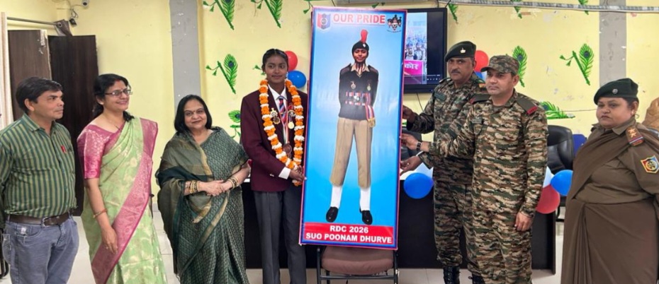 नर्मदापुरम / शासकीय गृह विज्ञान स्नातकोत्तर अग्रणी महाविद्यालय में दिनांक 11 फरवरी 2026 को एनसीसी गौरव दिवस मनाया गया। यह गौरव दिवस एनसीसी कैडेट सीनियर अंडर ऑफिसर कुमारी पूनम धुर्वे के सम्मान में आयोजित किया गया। इस अवसर पर महाविद्यालय की प्राचार्य डॉ. श्रीमती कामिनी जैन, एस एम सूबेदार मेजर मनोज कुमार शर्मा, सूबेदार संजय पाटिल ट्रेनिंग जीसीओ, सीनियर जीसीआई करुणा सिंह ने मंच पर अपनी गरिमामयी उपस्थिति प्रदान की। मां सरस्वती की पूजन दीप प्रज्ज्वलन एवं अतिथियों के स्वागत उपरांत कार्यक्रम का शुभारंभ किया गया। इस अवसर पर महाविद्यालय द्वारा छात्र को प्रशस्ति पत्र एवं प्रतीक चिन्ह प्रदान कर सम्मानित किया गया। महाविद्यालय के प्राचार्य डॉ. श्रीमती कामिनी जैन ने अपनी उद्बोधन ने कहा कि प्रतिभा स्थिति की मोहताज नहीं होती यह बात पूनम ने सिद्ध कर दी है, युवा पीढ़ी मेहनत ना करने का बहाना ढ़ूढती है। हमारे होनहार छात्र ने अपनी मेहनत और लगन से एक उदाहरण प्रस्तुत कर दिया है। महाविद्यालय की एनसीसी इकाई अत्यंत समृद्ध है। पिछले दो वर्षों से महाविद्यालय की छात्राएं गणतंत्र दिवस परेड में अपनी परचम लहरा रही है। गांव की बेटी ने अपना एवं महाविद्यालय का नाम रोशन किया है। डॉ. जैन एनसीसी प्रभारी डॉ. कीर्ति दीक्षित एवं शैलेन्द्र तिवारी की सराहना करते हुए कहा कि इनके कुशल मार्गदर्शन में छात्राएं उतरोत्तर प्रगति के पथ पर अग्रसर है। एस एम सूबेदार मेजर मनोज कुमार शर्मा ने अपने अनुभवों को साझा करते हुए कहा कि सबसे हटकर कार्य करोगे तो सफलता प्राप्त होगी। एनसीसी मेहनत एवं अनुशासन का पर्याय है। हमें आशा है कि आगामी वर्ष में भी गृहविज्ञान महाविद्यालय की छात्राएं इसी प्रकार ख्याति प्राप्त करेंगी। 5 एमपी गर्ल्स बटालियन द्वारा छात्रा को प्रतीक चिन्ह प्रदान किया गया एवं पूनम धुर्वे के चित्र का अनावरण किया गया। इस अवसर पर बी एच एम रामकुमार शर्मा, हवलदार मुकेश डीगरा ने सक्रिय सहयोग प्रदान किया। कार्यक्रम का सफल संचालन डॉ. कीर्ति दीक्षित ने एवं आभार शैलेंद्र तिवारी ने किया। कार्यक्रम में डॉ. भारती दुबे, डॉ. पुष्पा दुबे, डॉ. हर्षा चचाने, डॉ. श्रुति गोखले, डॉ. आर बी शाह, डॉ. रामबाबू मेहर, आर के चौकीकर, डॉ. रागिनी सिकरवार, डॉ. दुर्गेश तेली, डॉ. वैशाली लाल, प्रेमकांत कटंगकार, श्रीमती आभा बाधवा, डॉ. निशा रिछारिया, श्रीमती प्रीति ठाकुर, डॉ. विजया देवासकर, अजय तिवारी, डॉ. मनीष चंद चौधरी, प्रदीप सिंह चौहान, डॉ. संगीता पारे, डॉ. रफीक अली, कुमारी श्वेता वर्मा श्रीमती अंकिता तिवारी, देवेंद्र सैनी, डॉ. चेतना बोरीबाल एवं महाविद्यालयीन स्टाफ एवं छात्राए उपस्थित रही।