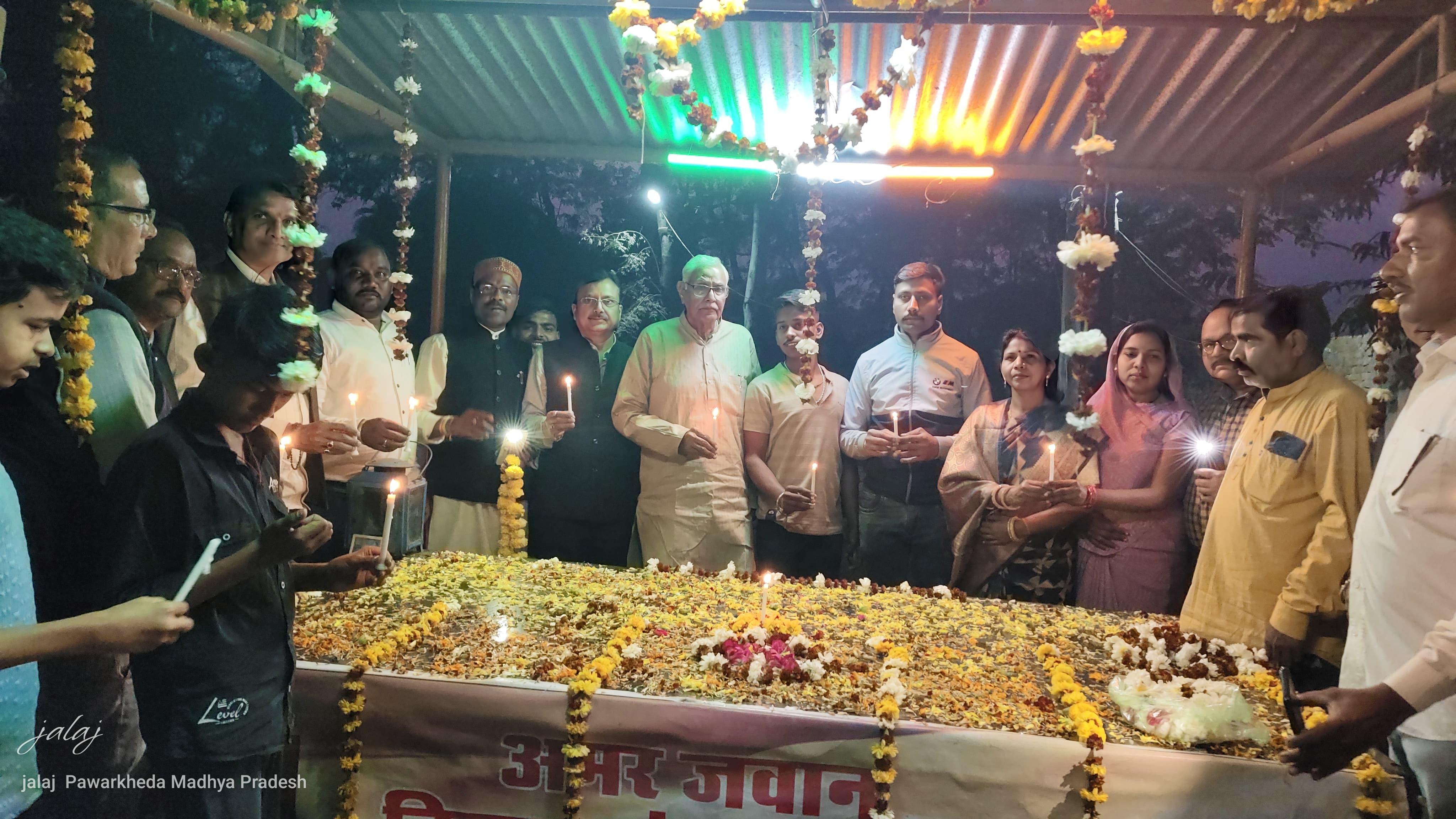 नर्मदापुरम / शनिवार को पुलवामा में शहीद हुए देश के वीर जवानों को श्रद्धांसुमन अर्पित करने हेतु ग्राम ब्यावरा में अमर शहीद श्री विजय शंकर दुबे के समाधी स्थल पर पुलवामा हमले में शहीद हुए सैनिकों को कैंडल जलाकर श्रद्धांजलि अर्पित की। कार्यक्रम में विशेष रूप से नर्मदापुरम विधायक डॉ. सीताशरण शर्मा, पूर्व जिला महामंत्री प्रसन्न हरणे, मंडल अध्यक्ष गोकुल पटेल, पुरानी इटारसी मंडल अध्यक्ष मयंक महतो , मण्डल महामंत्री हिमाचल सिंह, मंडल अध्यक्ष महिला मोर्चा श्रीमती प्रीति चिरगानिया, सरपंच अनिल चौरे, पाटोदी जनपद सदस्य सोनू चौरे, कमलेश चौरे एवं बड़ी संख्या में युवा उपस्थित रहे।