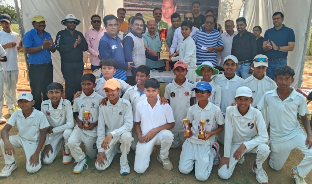 नर्मदापुरम / स्वर्गीय जे एल वर्मा ट्रॉफी इंटर डिस्ट्रिक्ट अंडर-13 प्रतियोगिता का फाइनल नर्मदापुरम और बैतूल के मध्य एमपीसीए ग्राउंड पर खेला गया। जिसमें नर्मदापुरम ने पहली पारी में बढ़त के आधार पर बैतूल को हराया। नर्मदा पुरम संभाग क्रिकेट संघ के मानसेवी सचिव प्रदीप तोमर ने बताया कि नर्मदापुरम ने टॉस जीतकर पहले बल्लेबाजी करते हुए भव्य गोठी के 110 रनों की शतकीय पारी एवं प्रज्ञान थापक 52 रनों की मदद से 277 रन बनाकर ऑल आउट हुई। बैतूल की ओर से सक्षम महाले ने 7 विकेट हासिल किए थे। लक्ष्य का पीछा करते हुए बैतूल की टीम 197 रनों पर ऑल आउट हो गई। जिसमें काव्यांश भालेकर सर्वाधिक 82 रनों की पारी खेली। नर्मदापुरम टीम की ओर से भव्य गोठी, प्रज्ञान थापक और निष्कर्ष परासर ने 2-2 विकेट एवं दिव्यांश चौरे और दिव्यांश जैन ने 1-1 विकेट हासिल किया। ऑल राउंड प्रदर्शन करने पर भव्य गोठी को मेन ऑफ द मैच चुना गया। मैच में अंपायर हरीश हनोटिया और गजेंद्र सालोकी एवं स्कोरर दिनेश वर्मा रहे। प्रतियोगिता समापन अवसर पर मुख्य अतिथि कपिल फौजदार ने अपने उद्बोधन में बताया कि स्वर्गीय जे एल वर्मा जी ने क्रिकेट में योगदान अपना महत्व पूर्ण योगदान दिया था। कार्यक्रम का संचालन राजेश चौरे जिला क्रिकेट संघ नर्मदापुरम अध्यक्ष द्वारा किया गया और आभार कुलभूषण मिश्रा द्वारा व्यक्त किया। पुरस्कार वितरण समारोह में कपिल फौजदार, विजय वर्मा, कुलभूषण मिश्रा, राजेश चौरे, निर्वेश फौजदार, संजय नाफडे, सुनील कालोसिया, अजय राठौर, शफीक खान, नितेश राजपूत, शैलेन्द्र पवार एवं अभिभावक गण सहित ग्राउंड स्टाफ मौजूद रहा।