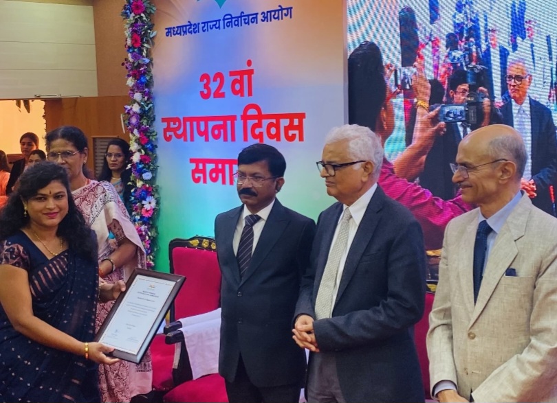नर्मदापुरम / मध्य प्रदेश राज्य निर्वाचन आयोग के 32 वें स्थापना दिवस पर राजधानी के निर्वाचन भवन में एक विशेष कार्यक्रम आयोजित किया गया। इस अवसर पर आयोग की ब्रांड एंबेसडर सारिका घारू को उनकी विशेष सेवाओं और प्रभावी जागरूकता अभियानों के लिए सम्मानित किया गया। कार्यक्रम में मुख्य अतिथि के रूप में उपस्थित पूर्व मुख्य चुनाव आयुक्त ओ.पी. रावत, पूर्व राज्य निर्वाचन आयुक्त आर. परशुराम, राज्य निर्वाचन आयुक्त मनोज श्रीवास्तव एवं सचिव दीपक सिंह ने प्रशस्ति पत्र देकर उनके कार्यों को सराहा। सारिका घारू को यह सम्मान राज्य में मतदाताओं को जागरूक करने और निर्वाचन प्रक्रियाओं विशेषकर पेपरलेस पंचायत उपचुनावों में प्रभावी जनभागीदारी सुनिश्चित करने के लिए दिया गया। इस अवसर पर सारिका ने पपेट शो के माध्यम से आयोग की पेपरलेस इलेक्शन, ईवीएम दूसरे राज्यों को उपलब्ध कराने, चुनाव मोबाईल एप की सफलता को प्रस्तुत किया । उल्लेखनीय है कि सारिका घारू लंबे समय से मध्य प्रदेश राज्य निर्वाचन आयोग की स्टेट ब्रांड एम्बेसेडर के रूप में कार्य कर रही हैं। उन्होंने अपनी जागरूकता गतिविधियों के माध्यम से दूर-दराज के क्षेत्रों में मतदाताओं को उनके अधिकारों के प्रति शिक्षित किया है।