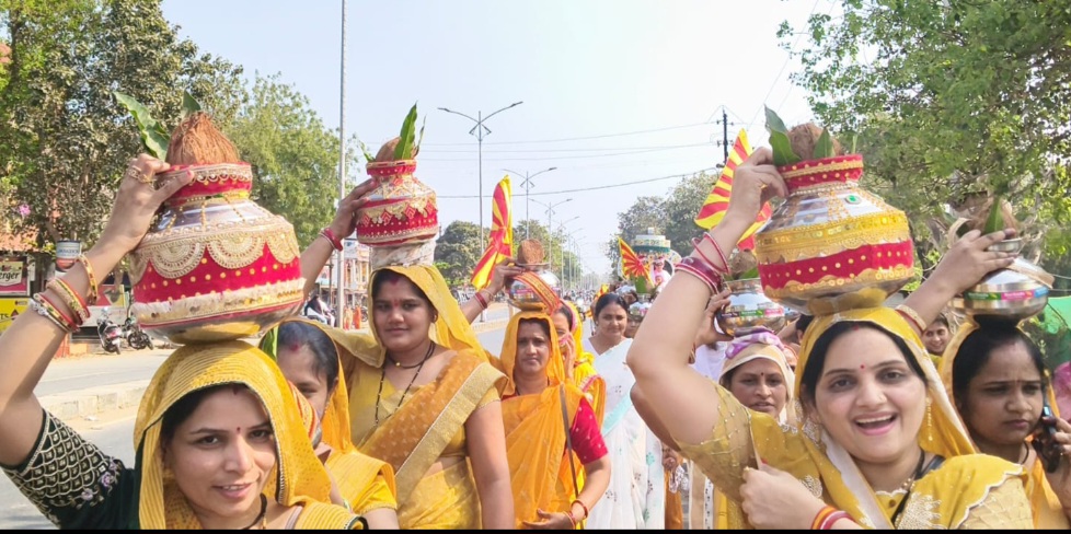 नर्मदापुरम / प्रजापिता ब्रह्माकुमारी ईश्वरीय विश्वविद्यालय द्वारा साधु वासवानी खेल मैदान सिंधी कॉलोनी ग्वालटोली में शिव पुराण कथा का हुआ शुभारंभ। ब्रह्माकुमारी विद्यालय से भव्य कलश यात्रा निकाली गई। कलश यात्रा में बड़ी संख्या में श्रद्धालुओं ने भाग लिया। भगवान शिव पार्वतीजी की मनमोहक झांकी मुख्य आकर्षण में रही। जिसने उपस्थित जनसमूह को भाव विभोर कर दिया। कार्यक्रम में नगर के गणमान्य उपस्थित रहे। सरिता मालवीय तहसीलदार नर्मदापुरम, नीतू यादव नगर पालिका अध्यक्ष, निर्मला हंसराज पार्षद, सुषमा खत्री पार्षद, नीरजा फोजदार वरिष्ठ समाज सेविका, नरेंद्र पटेल पार्षद, सुभाष गौर विधायक प्रतिनिधि सहित शहर के कई गणमान्य नागरिक उपस्थित रहे। कथा वाचिका बी के नीलू ने भगवान शिव की महिमा का सुंदर वर्णन करते हुए श्रद्धालुओं को अध्यात्मिक संदेश दिया और दिव्य और अलौकिक अनुभूति करवाई। बी के सुनीता ने सभी को प्रतिदिन आने का निमंत्रण देते हुए कहा कि यह कार्यक्रम 16 से 22 तारीख तक 7 दिवसीय रहेगा। जिसमें प्रतिदिन सुबह 6:30 से 8:00 तक म्यूजिकल एक्सरसाइज और साथ ही तनाव मुक्त जीवन जीने की कला सिखाई जाएगी। दोपहर 2 बजे से 5 बजे तक शिव पुराण कथा का आयोजन होगा। बी के तुलसा ने कार्यक्रम की सराहना करते हुए भगवान को कैसे याद करें उसकी विधि बताई। दीप प्रज्वलित कर कार्यक्रम का विधिवत रूप से उद्घाटन किया गया।