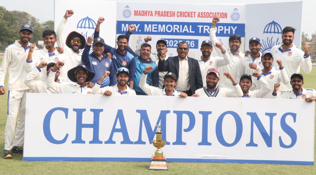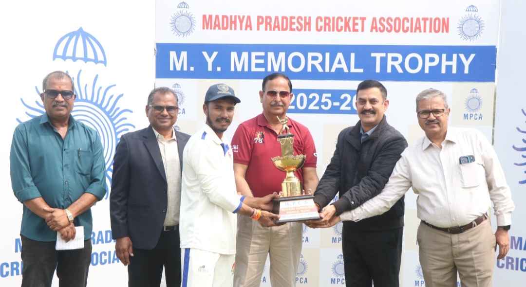 नर्मदापुरम / मध्यप्रदेश क्रिकेट एसोसिएशन द्वारा आयोजित मेंस सीनियर महाराजा यशवंतराव ट्रॉफी पर नर्मदापुरम संभाग ने पुनः अपना दबदबा कायम रख विजयश्री प्राप्त की है। पॉइंट्स टेबल के आधार पर शीर्ष स्थान की टीम इंदौर और नर्मदापुरम के मध्य प्रतियोगिता का फाइनल मुकाबला इंदौर के डेली कॉलेज ग्राउंड पर खेला गया। नर्मदापुरम संभाग क्रिकेट संघ सचिव प्रदीप तोमर के अनुसार नर्मदापुरम टीम ने टॉस जीतकर पहले बल्लेबाजी कर महज 174 रन बना कर ऑल आउट हो गई। जिसमें सर्वाधिक यश दुबे 55 रन बनाए। इंदौर की ओर से सारांश सुराना ने 5 विकेट और आकाश राजावत ने 4 विकेट हासिल किए।जवाब में इंदौर की पूरी टीम ने 255 रन बनाकर ऑल आउट हुई। सारांश सुराना 57 रन, सचिन जांगिड़ 46 रन और ऋषभ चौहान 35 रन का योगदान दिया जिसके कारण इंदौर ने 81 रनों की बढ़त पहली पारी में हासिल कर ली थी लेकिन नर्मदापुरम टीम के बल्लेबाजों ने दूसरी पारी में यश दुबे और हिमांशु शिंदे के बीच पांचवें विकेट के लिए हुई शानदार 261 रनों की महत्वपूर्ण साझेदारी ने विशाल स्कोर खड़ा कर मैच का रुख बदल दिया। नर्मदापुरम के यश दुबे ने 242 रन और हिमांशु शिंदे 119 रन बनाकर आउट हुए। दूसरी पारी में नर्मदापुरम की टीम ने 491 रन बनाकर पारी घोषित की और पहली पारी में 81 रनों को कम कर 410 रनों का लक्ष्य इंदौर को दिया। विशाल लक्ष्य का पीछा करते हुए इंदौर की पूरी टीम नर्मदापुरम के गेंदबाजों के सामने टिक न पाई और 254 रनों पर आउट हो गई और नर्मदापुरम ने मैच 156 रनों के अंतर से जीत कर पुनः ट्रॉफी पर कब्जा कर लिया है।नर्मदापुरम टीम की तरफ से आर्यन देशमुख ने 3 विकेट, ऋत्विक दीवान और हिमांशु शिंदे को 2-2 विकेट एवं पुलकित गिरी को 1 विकेट हासिल हुआ। पुरस्कार वितरण समारोह मध्य प्रदेश क्रिकेट संगठन के सचिव सुधीर आसनानी, डेली कालेज के बर्सर हर्षवर्धन सिंह, मध्य प्रदेश क्रिकेट के संगठन के कोषाध्यक्ष संजीव दुआ एवं मध्य प्रदेश क्रिकेट संगठन के मैनेजिंग कमेटी सदस्य अनुराग मिश्रा द्वारा किया गया!
