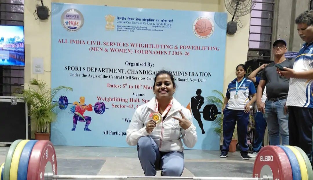 नर्मदापुरम / ऑल इंडिया सिविल सर्विसेज वेटलिफ्टिंग एंड पावर लिफ्टिंग चैंपियनशिप में खेल अधिकारी उमा पटेल ने एमपी का प्रतिनिधित्व किया। इस दौरान उन्होंने स्वर्ण पदक अपने नाम कर लिया। यह प्रतियोगिता चंडीगढ़ में आयोजित की जा रही है। उन्होंने 63 किलो कैटेगरी में 93 किलो वजन उठाया । इस पर मैदान में नर्मदे हर के जयकारे लगे। उमा के प्रदर्शन से पूरा टूर्नामेंट स्थल जयकारों से गूंज उठा। इससे शहर सहित प्रदेश के खेल प्रेमियों और विभाग में खुशी का माहौल है। चंडीगढ़ में ऑल इंडिया सिविल सर्विसेस वेटलिफ्टिंग एंड पावरलिफ्टिंग टूर्नामेंट 2025-26 का आयोजन 5 से 10 मार्च तक किया जा रहा है। इस राष्ट्रीय स्तर की प्रतियोगिता में देश भर खिलाड़ी हिस्सा ले रहे हैं। उमा पटेल पटेल ने 63 किलो कैटेगरी मे में हिस्सा लिया। पंजाब की अनीता ने दूसरे स्थान पर रहकर सिल्वर और महाराष्ट्र की सोनाली ने ब्रॉन्ज मेडल जीता है।