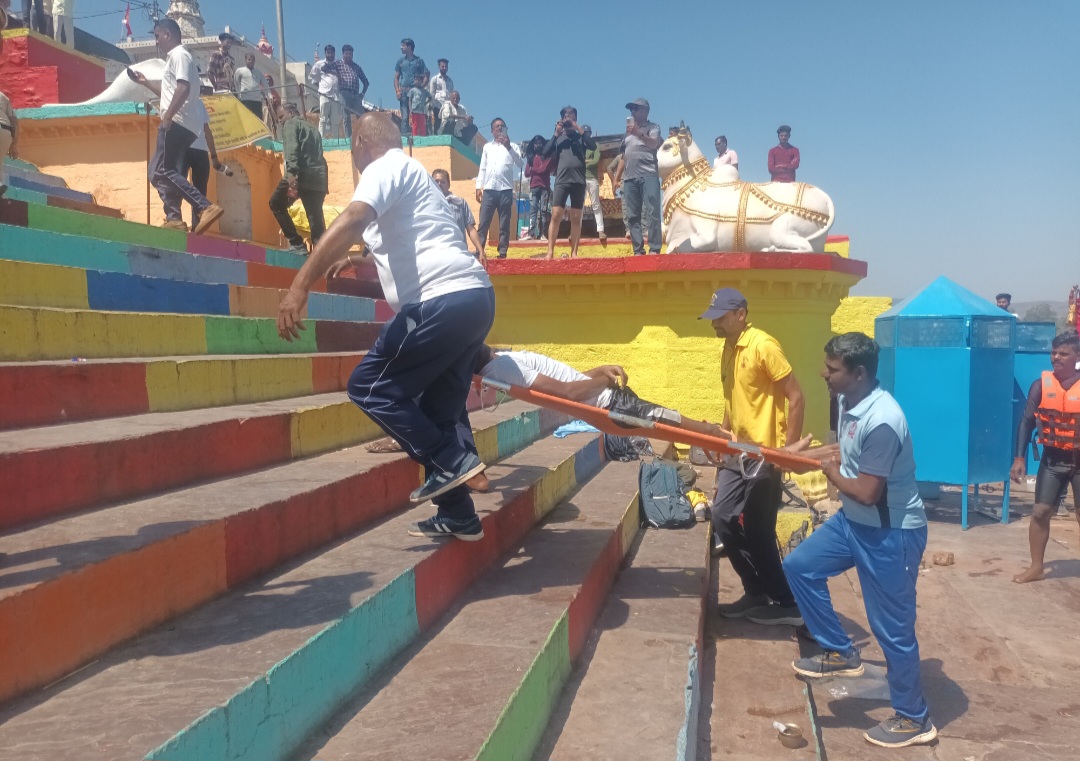कलेक्टर सोनिया मीना, पुलिस अधीक्षक साई कृष्णा , डिप्टी कलेक्टर डाक्टर बबीता राठौर, तहसीलदार सरिता मालवीय, सिटी कोतवाली थाना प्रभारी कंचन ठाकुर, होम गार्ड से अमृता दीक्षित की उपस्थिति में बड़ी संख्या में गणमान्यजन, नर्मदा स्नान श्रद्धालुओं की मौजूदगी में बाढ आपदा बचाव का सफल प्रदर्शन आयोजन किया गया। मुम्बई के आपदा प्रबंधन बचाव प्रशिक्षण के प्रशिक्षकों द्वारा बाढ आपदा के आधुनिक तकनीक से बचाव करने के तरीके से अवगत कराया गया।