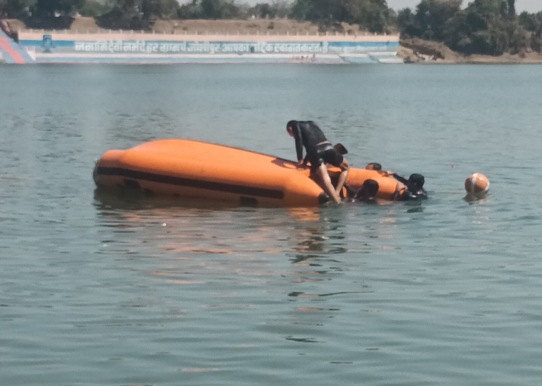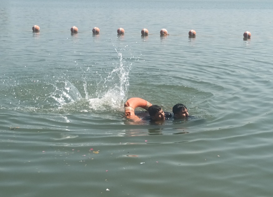 नर्मदापुरम / जिला आपदा प्रबंधन प्राधिकरण नर्मदापुरम द्वारा अमृता शर्मा दीक्षित प्लाटून कमांडेंट के नेतृत्व में सेठानी घाट पर एस डी आर एफ, सिविल डिफेंस, होमगार्ड के जवानों ने बाढ़ आने , नदी में नाव पलटने, नदी में डूबने वाले को बचाने का माॅकड्रिल प्रदर्शन किया।