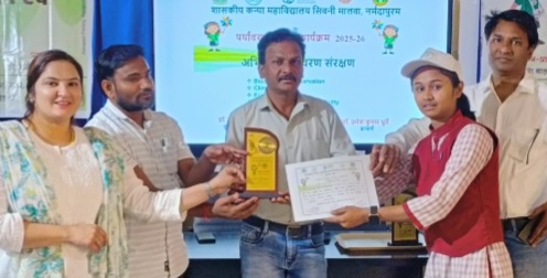 नर्मदापुरम / शासकीय कन्या महाविद्यालय सिवनी मालवा में इको क्लब के अंतर्गत आयोजित विभिन्न पर्यावरणीय गतिविधियों के प्रतिभागियों को सम्मानित करने हेतु महाविद्यालय में पुरस्कार एवं प्रमाण पत्र वितरण कार्यक्रम आयोजित किया गया। कार्यक्रम में इको क्लब के अंतर्गत आयोजित ग्रीन गणेश जागरूकता अभियान, विश्व ओजोन दिवस पर रंगोली एवं पोस्टर प्रतियोगिता, सतत जीवन शैली पर पोस्टर प्रतियोगिता, “वेस्ट टू वेल्थ” विषय पर एक दिवसीय कार्यशाला तथा “मिलेट्स व्यंजन मेला” में भाग लेने वाली छात्राओं को पुरस्कार एवं प्रमाण पत्र प्रदान किए गए। इस अवसर पर महाविद्यालय के प्राचार्य डॉ. उमेश कुमार धुर्वे ने अपने उद्बोधन में कहा कि वर्तमान समय में पर्यावरण संरक्षण मानव जीवन की सबसे महत्वपूर्ण आवश्यकता बन गया है। उन्होंने कहा कि महाविद्यालय में इको क्लब के माध्यम से समय-समय पर आयोजित की जाने वाली गतिविधियाँ छात्राओं में पर्यावरण के प्रति जागरूकता, जिम्मेदारी तथा सकारात्मक सोच विकसित करती हैं। उन्होंने छात्राओं से अपील की कि वे अपने दैनिक जीवन में भी पर्यावरण अनुकूल आदतों को अपनाएँ तथा समाज में पर्यावरण संरक्षण का संदेश फैलाएँ।