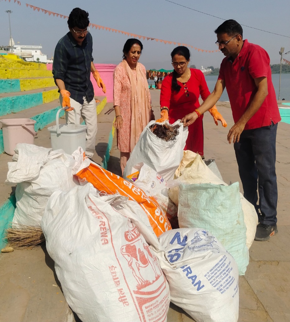 नर्मदापुरम / अखिल भारतीय कायस्थ समाज मातृशक्ति द्वारा स्थानीय चित्रगुप्त घाट पर प्रत्येक रविवार को स्वच्छता अभियान चलाया जाता है स्वच्छता अभियान के अंतर्गत घाट के किनारे पर जमी गंदगी कचरा कूड़ा निकल गया और उक्त कचरे को बोरियों में भरकर एकत्रित किया गया घाट के किनारे से फूल माला के अलावा अन्य जो सामग्री घाट पर लोग फेंक कर जाते हैं उन सबको एकत्रित किया और एक-एक करके सभी बोरियों में उसे पैक किया गया। इस अवसर पर नगर पालिका उपाध्यक्ष अभय वर्मा ने कहा कि मां नर्मदा हमारे जीवन दायिनी है हम सबका कर्तव्य है की मां नर्मदा को स्वच्छ और सुंदर रखना है। इसलिए इस स्वच्छता अभियान में हम सब लोग को आगे आकर स्वच्छता अभियान को आगे बढ़ाना है। श्री वर्मा ने कहा कि नर्मदा में फूल इत्यादि व अन्य सामग्री ना फेक इसलिए समाज के लोगों ने संकल्प लिया है कि स्वच्छता अभियान हमारा मुख्य उद्देश्य है और इस अभियान के तहत हम हर व्यक्ति को जागरूक करने का प्रयास कर रहे हैं। नर्मदापुरम स्थित सभी घाटों पर हर पूर्णिमा अमावस्या पर धार्मिक इन त्योहारों पर बाहर से श्रद्धालु नर्मदा में डुबकी लगाने आते हैं, हमने उन सभी लोगों से अपील की है कि नर्मदा में किसी भी प्रकार से फूल माला इत्यादि विसर्जित ना करें नर्मदा को स्वच्छ और सुंदर बनाना है। इस मौके पर अखिल भारतीय कायस्थ समाज मातृशक्ति जिला अध्यक्ष ज्योति अभय वर्मा, प्रखर समाजसेवी सुमन वर्मा, प्रीती खरे, मनोज वर्मा, मंजू श्रीवास्तव, रश्मि सक्सैना, रश्मि वर्मा, केशव वर्मा, लालता प्रसाद सहित अन्य समाज के अलावा शिक्षिका ममता तिवारी, रश्मि वर्मा सहित अन्य लोगों विशेष रूप से उपस्थित थे।