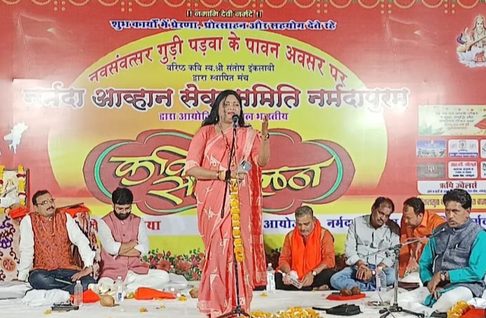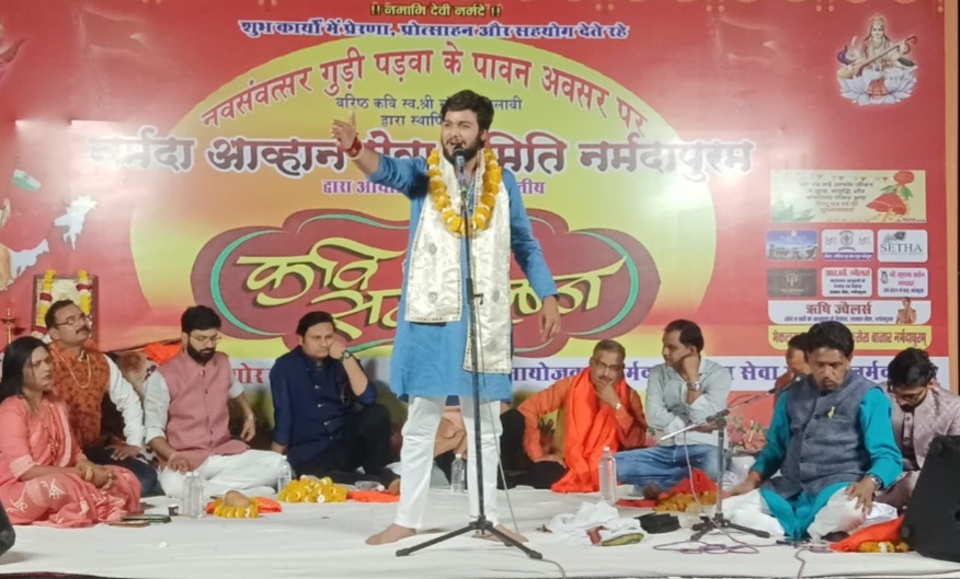 नर्मदापुरम / नव संवतसर, गुडी पडवा के पावन अवसर पर विगत 21वर्षो की भांति इस वर्ष भी साहित्यक आयोजन की श्रंखला मे साहित्य, संस्कृति, रचनात्मक कार्यों को समर्पित नर्मदा आव्हान सेवा समिति व्दारा अखिल भारतीय कवि सम्मेलन का आयोजन को सेठानी घाट पर धर्माचार्य सौमेश परसाई के मुख्य आतिथ्य मे तथा विशिष्ट अतिथि के रूप मे वरिष्ठ समाजसेवी डाँ. अतुल सेठा, हंस राय की उपस्थिति में हुआ। नर्मदा आव्हान सेवा समिति मुक्त कंठ से कार्यक्रम की सराहना करते हुए आयोजक केप्टिन करैया को बधाई देते हुए कहां की ऐसे आयोजन होते रहना चाहिए। उन्होंने कहा कि कवि गण भी रात्रि जागरण कर जन जागरण करते हैं यह भी साहित्यिक अनुष्ठान जब लोग सोते है तब कवि जागते हुए जन जागरण करते है। उन्होंने कहा सनातन धर्म में साहित्य का विशेष महत्व है। साहित्य से समाज मे जाग्रति आती है। इसलिए साहित्यकारों का समाज मे विशेष योगदान है। इस दौरान निरंतर 21वर्षों से कुशलता पूर्वक उत्कृष्ट संचालन कर रहे वरिष्ठ कवि कौशल सक्सेना को स्व. संतोष इंकलाबी स्मृति साहित्य गौरव सम्मान से सम्मानित किया गया। सरस्वती वंदना से कवि सम्मेलन प्रारंभ हुआ डाँ. रानू रुही जबलपुर ने सरस्वती वंदना प्रस्तुत की कवि सम्मेलन मे कवियो ने रात्री तीन बजे तक गीत, गजल, हास्य व्यंग्य, ओज की रचनाओं से श्रोताओ को भाव विभोर किया। कवि सम्मेलन में 11 कवियों ने कविता पाठ किया कौशल सक्सेना ने कहा “माता पिता के विश्वास को ठगना मत,प्यार भले कर लेना पर भगन मत” अपनी कविता पर श्रोताओ को खूब ताली बटोरी एंव वाहवाही हुई। राजस्थान से आये वरिष्ठ हास्य कवि डाँ. आदित्य जैन ने कहा “अकबर भी डर गया, तेरी छाती के नापसे,चट्टान भी पिघल गयी, संसो के ताप से।मिट्टी मे गिरा खून तो हल्दी महक उठी, धरती ये धन्य हो गई, राणा प्रताप से” सहित अन्य रचनाओ पर हंसा हसाकर लोटपोट कर दिया। भोपाल से हास्य कवि दीपक दनादन ने “प्यार मोहब्बत वाला बनता दुनिया में यदि बम। खून बहाते नहीं सभी को गले लगाते हम”। अपनी कविता पर श्रोताओ को खूब ताली बटोरी एंव वाहवाही हुई। देवनगर से आये हास्य व्यंग्य के कवि दिनेश याज्ञिक ने कहा ” खोखले नारों से हिंदू एक नहीं हो पाएंगे। नहीं हुऐ तो भूमंडल पर सेफ नहीं हो पाएंगे। नारों की सच्चाई अब कसौटी पर टिकनी चहिए।