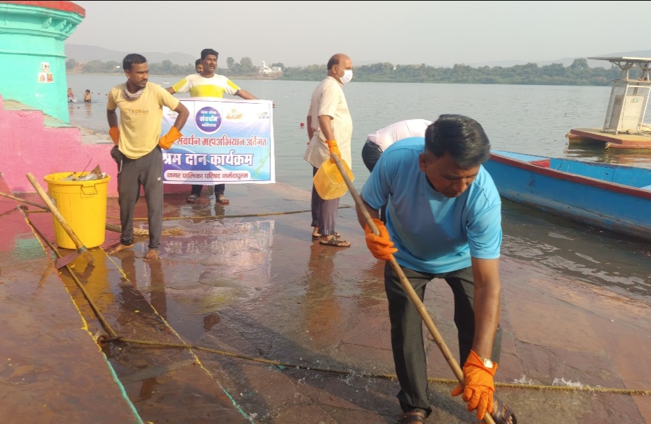 नर्मदापुरम / जिला प्रशासन एवं नगरपालिका प्रशासन के संयुक्त तत्वावधान में गुरूवार को जल गंगा संवर्धन अभियान की शुरूआत पर्यटन घाट से की गई। जिसमें अधिकारीगण, समाजसेवीगण और नपा के अधिकारी कर्मचारी उपस्थित रहे। नपा उपयंत्री एवं जल गंगा संवर्धन अभियान की प्रभारी अधिकारी आयुषी रिछारिया ने बताया कि जल गंगा संवर्धन अभियान के तहत आज पर्यटन घाट पर विशेष स्वच्छता अभियान चलाया गया। जिसमें अनेक लोगों ने बढ़ चढ़कर हिस्सा लिया। इस अवसर पर जिला पंचायत के सीईओ हिमांशू जैन, सिटी मजिस्ट्रेट देवेंद्र प्रताप सिंह, मुख्य नगरपालिका अधिकारी हेमेश्वरी पटले, अभियान की प्रभारी अधिकारी आयुषी रिछारिया, सहायक नोडल योगेश सोनी, संजय लुटारे, सतीष यादव, अनंत सिंह राजपूत, विजय कहार सहित समाज सेवीगण उपस्थित रहे।