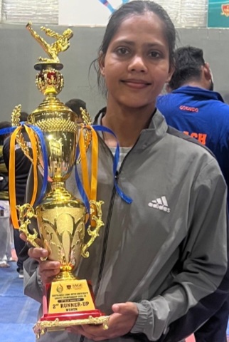 नर्मदापुरम / उच्च शिक्षा विभाग की साउथ-वेस्ट जोन इंटर यूनिवर्सिटी कराटे महिला प्रतियोगिता का आयोजन दिनांक 17 से 21 मार्च 2026 सेज यूनिवर्सिटी भोपाल में किया जा रहा है। इस प्रतियोगिता के महिला वर्ग में नर्मदा एजुकेशन सोसायटी कॉलेज के बी.पी.एड. तृतीय सेमेस्टर की छात्रा रोशनी राजपूत ने शानदार प्रदर्शन करते हुए द्वितीय स्थान प्राप्त किया। इस उत्कृष्ट प्रदर्शन के आधार पर खिलाड़ी का चयन अखिल भारतीय अंतर विश्वविद्यालय खेल प्रतियोगिता के लिए किया गया है। अब यह प्रतियोगिता राष्ट्रीय स्तर पर असम यूनिवर्सिटी में आयोजित होगी, जिसमें वह भाग लेंगी। इस उपलब्धि पर महाविद्यालय के प्रबंधक अरुण शर्मा, प्राचार्य डॉक्टर ज्योत्सना खरे, प्राध्यापक रविशंकर मिश्रा, प्रवीण मीना एवं समस्त स्टाफ ने रोशनी राजपूत को शुभकामनाएँ दीं। रोशनी की यह उपलब्धि महाविद्यालय के लिए गर्व का विषय है।