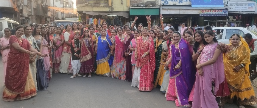 सिवनी मालवा / सुहागन महिलाओं ने पति की दिर्घायु सुखी जीवन की कामना एवं अविवाहित युवतियो ने योग्यवर की प्राप्ति के लिए 16 दिवसीय गणगौर उत्सव का शनिवार को समापन किया। मारवाड़ी समाज की सदस्य नीरू राठी ने बताया चैत्र शुक्ल पक्ष तीज के अवसर पर सुबह महिलाओं और युवतियों ने सोलह श्रृंगार करके पूर्ण श्रद्धा और भक्ति के साथ गोर गोमाती की पूजा अर्चना की। इस दौरान पार्वती के गीत गाते हुए श्री सीताराम मंदिर में ईसर गोर की पूजा अर्चना के साथ ही गोर गोर गोमती ईसर पूजे पार्वती मेहंदी कुमकुम हल्दी चुंदड़ी के गीत गाते हुए सीता राम मंदिर मे ईसर गोर की पूजा अर्चना की। साथ ही कुमकुम, हल्दी और मेहंदी के टीके लगाकर विदाई दी। शाम 5:00 बजे श्री सीताराम मंदिर कल्लू चौक से बेड बाजे के साथ ईसर गोर की प्रतिमा को दूल्हा दुल्हन के रूप में सजाकर मारवाड़ी महिलाओं ने नगर के प्रमुख मार्ग से नृत्य करते हुए शोभा यात्रा निकाली। इस शोभायात्रा का विर्सजन स्थानीय राम जानकी राधा कृष्ण मंदिर पर जाकर किया जहां पाती झाले देने के बाद अपने-अपने पतियों के नाम लेकर ईसर गोर को पानी पिलाया और ज्वारे की बाड़ियो को विसर्जित किया गया। शोभा यात्रा का नगर में विभिन्न स्थानों पर स्वागत किया गया। इसमें माहेश्वरी समाज, ब्राह्मण समाज, अग्रवाल समाज, जैन समाज, खंडेलवाल समाज सहित सकल मारवाड़ी समाज की महिला युवती और बच्चे बड़ी संख्या में शामिल हुए। इस अवसर पर मारवाड़ी समाज नीरू राठी, कृष्णा व्यास, प्रीति गोयल, सुनीता सारडा, पूजा अग्रवाल, रेखा पारिख, मीना अग्रवाल, भारती अग्रवाल, कविता अग्रवाल, साधना गोयल, प्रेमलता तोषनीवाल, सुधा महेश्वरी, शीला सारडा, ऊषा सारडा, कविता खडलोया, मोना टावरी, सविता टावरी, रेनू राठी, पुनीता सारडा, स्वाति महेश्वरी, भावना पुरोहित, कविता मोदी, मेघा उपाध्याय, अनीता खंडेलवाल, ममता खंडेलवाल, मेघा खंडेलवाल, वर्षा शर्मा, रंजू शर्मा, वंदना जैन, अलका गोयल, ममता पुरोहित, चित्रा अग्रवाल, सुनीता अग्रवाल, अनिता जांगरे, सीमा उपाध्याय, संगीता जैन, नीतू शर्मा सहित महिला मंडल उपस्थित थी।