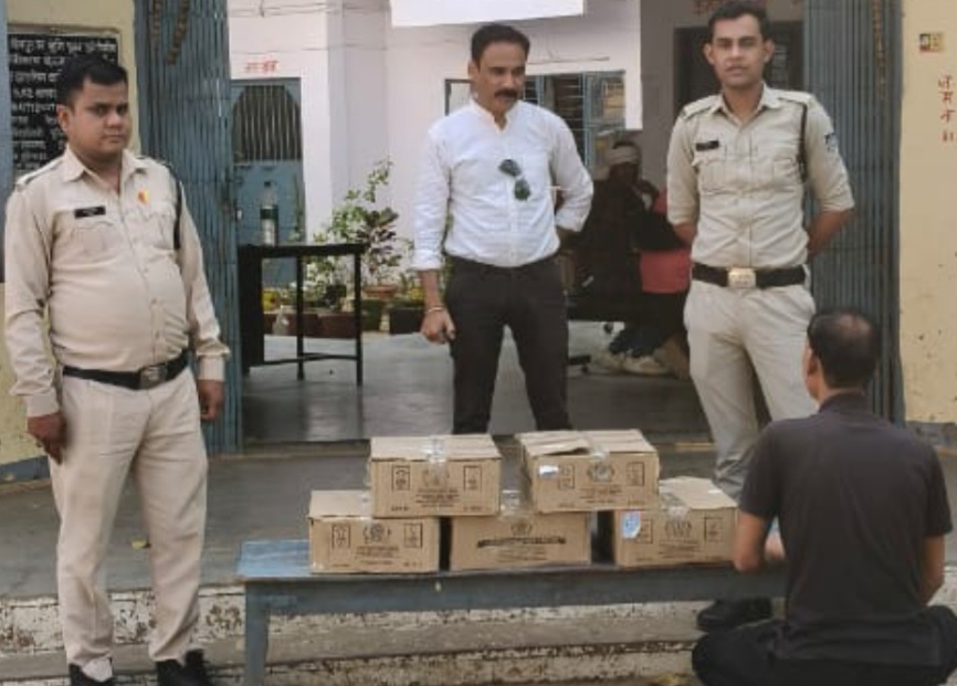 कार्रवाई के दौरान आरोपी के कब्जे से देशी एवं लाल मसाला क्वार्टर की कुल पांच पेटियों में रखी 250 क्वार्टर अवैध शराब बरामद की गई, जिसकी कुल मात्रा 41.760 लीटर एवं अनुमानित कीमत 19,400 रुपये बताई गई है। पुलिस द्वारा मौके पर ही शराब को जप्त कर लिया गया। पुलिस ने आरोपी के विरुद्ध संबंधित धाराओं के तहत अपराध पंजीबद्ध कर उसे हिरासत में ले लिया है तथा मामले की विस्तृत विवेचना जारी है। थाना प्रभारी विवेक यादव ने बताया कि क्षेत्र में अवैध गतिविधियों के खिलाफ लगातार कार्रवाई जारी रहेगी और किसी भी प्रकार की गैरकानूनी गतिविधि को बर्दाश्त नहीं किया जाएगा।
