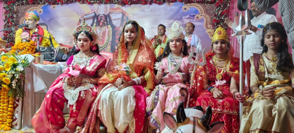 कथा स्थल पर आचार्य पं जितेन्द्रिय महाराज के मार्गदर्शन में आयोजन समिति द्वारा प्रतिदिन देवियाें की आकर्षक झांकी सजाई जा रही हैं। कन्याओं को देवी स्वरूप में तैयार कर कथा व्यास पीठ के समीप आसन लगाया जाता है। जब देवियों का आगमन कथा स्थल पर होता है तो पंडाल में विराजमान श्रद्धालुओं के द्वारा पुष्प वर्षा की जाती है। उसके बाद आरती की जाती है। महागौरी को सफेद रंग के बैल पर विराजमान कर चलित झांकी तैयार की गई। सभी उपस्थित श्रद्धालुओं ने श्रद्धाभाव के साथ ने दर्शन किए।