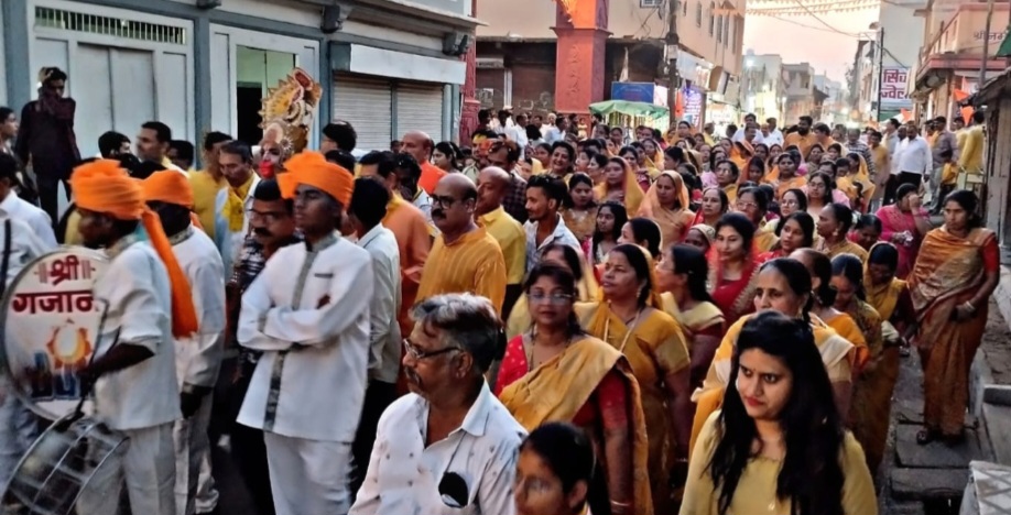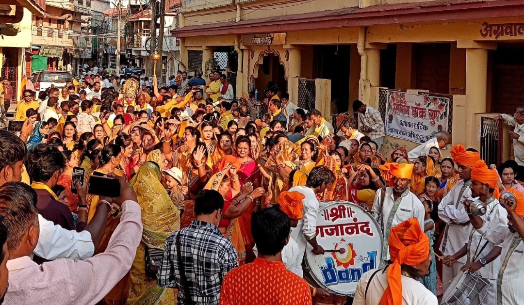 सिवनी मालवा / सियाराम महावीर मंदिर की प्राण प्रतिष्ठा को लेकर 23 मार्च से 27 मार्च तक धार्मिक कार्यक्रम किए जा रहे हैं । उसी कार्यक्रम की कड़ी में आज नगर में शोभा यात्रा निकाली गई। श्री राम जानकी लक्ष्मण हनुमान जी नगर भ्रमण के लिए निकले शोभा यात्रा बैंड बाजे के साथ गांधी चौक से शुरू होकर राधावल्लभ मंदिर कल्लू चौक देवी मंदिर बड़े मंदिर नर्मदा मंदिर होते हुए सियाराम महावीर मंदिर पहुंची। रास्ते में श्रद्धालुओं द्वारा नृत्य किए गए एवं श्री राम के नारो के जयकारे लगाए गए श्रद्धालुओं में भारी उत्साह देखा गया। शोभा यात्रा का जगह-जगह श्रद्धालुओं द्वारा पुष्प बर्षा कर भव्य स्वागत किया, पूरा नगर राममय हो गया। शोभायात्रा में हनुमान जी की वेशभूषा में श्रद्धालुओं का मन मोह लिया एवं बाहर से आई मंडली द्वारा डांडिया नृत्य की प्रस्तुति दी गई। शोभा यात्रा में हजारों की संख्या में श्रद्धालु शामिल हुए।