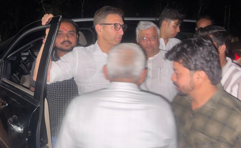 नर्मदापुरम / मध्यप्रदेश कांग्रेस कमेटी के अध्यक्ष जीतू पटवारी एवं मध्य प्रदेश शासन के पूर्व मंत्री सुखदेव पांसे छिंदवाड़ा से भोपाल लौटते समय कुछ क्षणों के लिए पथरोटा स्थित 11 मुखी हनुमान मंदिर के पास दर्शन करने हेतु रुके। राइस मिल में रहते हुए जैसे ही जिला कांग्रेस अध्यक्ष शिवाकांत गुड्डन पांडेय को जीतू पटवारी के आने की सूचना प्राप्त हुई। तत्काल जिला कांग्रेस अध्यक्ष शिवाकांत गुड्डन पांडेय वरिष्ठ कांग्रेस नेता ओम सेन एवं अन्य साथियों सहित पटवारी का स्वागत करने हेतु मंदिर के समक्ष पहुंच गए और उन्होंने जीतू पटवारी एवं सुखदेव पांसे से मुलाकात कर उनका स्वागत किया एवं कुछ आवश्यक चर्चा की। यह जानकारी जिला कांग्रेस प्रवक्ता अनिल रैकवार द्वारा दी गई।
