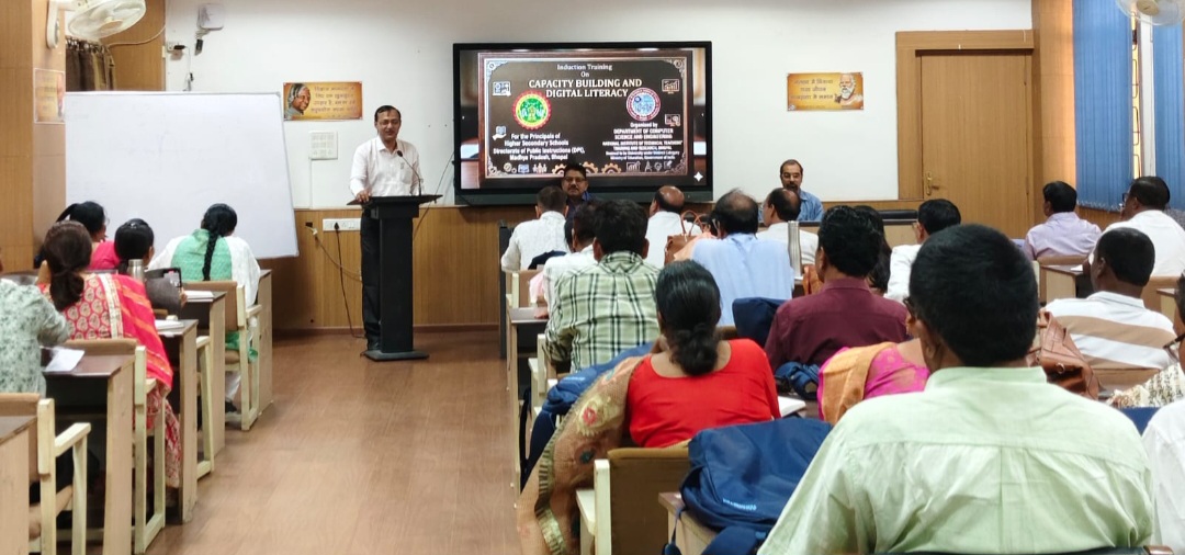 नर्मदापुरम / राष्ट्रीय तकनीकी शिक्षक प्रशिक्षण एवं अनुसंधान संस्थान भोपाल में दिनांक 23 मार्च 26 से 27 मार्च 26 तक लोक शिक्षण संचालनालय द्वारा आयोजित 5 दिवसीय प्राचार्य क्षमता संवर्धन प्रशिक्षण का अपर संचालक डॉ. मनीष वर्मा ने अवलोकन करने के उपरांत अपने उदगार वयक्त किए गए। इस अवसर उन्होंने रेलवे रिजर्वेशन प्रक्रिया एवं निर्वाचन आयोग की बी एल ओ के माध्यम से मतदाता सूची पुनरीक्षण के कार्य उदहारण देते हुए प्रतिभागियों को विद्यालयों में शैक्षिक तकनीक के प्रभावी इस्तेमाल करने पर ज़ोर दिया। जिस प्रकार रेलवे रिजर्वेशन में कागज़ के चार्ट के स्थान पर टीटीई टैबलेट का उपयोग कर चंद सेकंड में प्रत्येक यात्री का सत्यापन दर्ज कर उलेते हैं और प्रतीक्षा सूची के यात्री को भी उसके टिकट कन्फर्म होने या नहीं होने की सूचना उसके मोबाइल पर संदेश से हाथों हाथ मिल जाती है, उसी प्रकार शिक्षक भी सरकारी ग्रांट से क्रय किए गए टैबलेट से सत्र के प्रारम्भ में अपनी कक्षा के विद्यार्थियों का डेटा सेव करके प्रतिदिन उनकी कम समय में हाजरी दर्ज कर सकते हैं तथा यदि उनके अभिभावक का मोबाइल नंबर भी दर्ज हो तो उन्हें भी मोबाइल पर उनके बच्चे की उपस्थिति मैसेज के रूप में भेजी जा सकती है। इसी प्रकार प्रत्येक शिक्षक स्मार्ट क्लास के स्मार्ट बोर्ड अनुप्रयोग सीखकर अपना अध्यापन कार्य प्रभावी बना सकता है। जब निर्वाचन आयोग द्वारा मतदाता सूची के पुनरीक्षण कार्य में भी मोबाइल ऐप के जरिए आंगनवाड़ी कार्यकर्ता/शिक्षक ऑनलाइन कार्य कर सकते हैं तो हमें भी विद्यालयों में उपलब्ध स्मार्ट क्लास, आई सी टी लैब, टैबलेट इत्यादि का उपयोग सुनिश्चित करना चाहिए। विद्यालय के संसाधनों के बेहतर उपयोग एवं प्रबंधन से हम विद्यार्थियों के लिए रुचिकर शैक्षिक एवं सह शैक्षिक गतिविधियां संचालित कर सकते हैं। यह गौरतलब नवीन शैक्षिक सत्र 2026-27 में सभी विद्यालयों में शैक्षिक गतिविधियों को सुचारू रूप से संचालित कराने हेतु आयुक्त लोक शिक्षण मध्यप्रदेश शिल्पा गुप्ता के कुशल मार्गदर्शन में प्रदेश के 1561 शासकीय हाई स्कूल एवं हायर सेकेंडरी स्कूलों के प्राचार्यों को क्षमता वृद्धि हेतु 20 बैच में 5-5 दिवस का आवासीय प्रशिक्षण भारत सरकार शिक्षा विभाग के राष्ट्रीय संस्थान NITTTR भोपाल में प्रदान करने हेतु संस्थान के संजय अग्रवाल प्राध्यापक, प्रशिक्षण कार्यक्रम के लिए निदेशक बनाए गए हैं तथा लोक शिक्षण संचालनालय के डॉ. महेश जैन को समन्वयक का दायित्व दिया गया है।