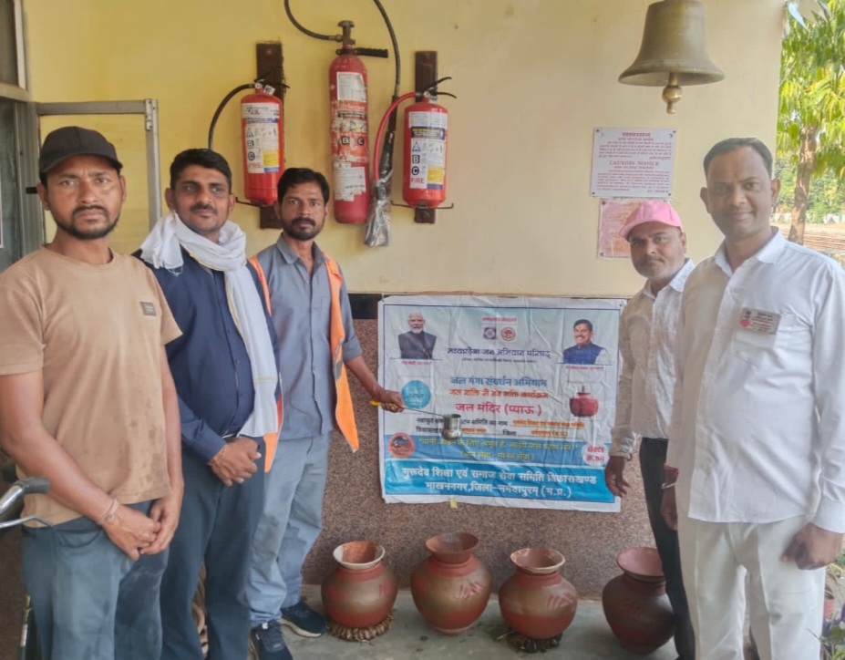 माखननगर / मध्य प्रदेश जन अभियान परिषद की नवांकुर संस्था गुरुदेव शिक्षा एवं समाज सेवा समिति के माध्यम से जल गंगा संवर्धन अभियान के अंतर्गत जल मंदिर (प्याऊ) की स्थापना बागरातवा रेलवे स्टेशन पर की गई। नवांकुर संस्था संचालक नीतिराजसिंह यादव ने बताया कि रेलवे स्टेशन पर सैकड़ों यात्रियों का आना जाना रहता है, वे ठंडे पानी के लिए परेशान रहते हैं। इसलिए समिति ने यहां प्याऊ की स्थापना की। रेलवे स्टेशन प्रबंधक बागरा नीलेश राय ने समिति के कार्य की प्रशंसा की एवं सभी को आभार व्यक्त किया। जिसमें स्टेशन प्रबंधक नीलेश राय, नवांकुर संस्था अध्यक्ष नीतिराजसिंह यादव सचिव मनोज परसाई, रेलवे स्टाप से ओम तिकड़ी एवं भरत कुमार बागरातवा समाजसेवी मुकेश वर्मा, ग्राम विकास प्रस्फुटन समिति मानागांव अध्यक्ष वीरेंद्र यादव, सचिव हरिनारायण यादव आदि उपस्थित रहे।