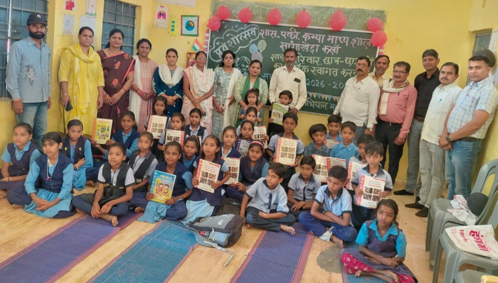 नर्मदापुरम /दिनांक 1 अप्रैल 2026 को शासकीय एकीकृत माध्यमिक शाला, सांगाखेड़ा कला में नवप्रवेशी विद्यार्थियों के स्वागत हेतु प्रवेश उत्सव का गरिमामय आयोजन संपन्न हुआ। इस अवसर पर अतिथि एवं जनशिक्षक गजेंद्र बछले तथा प्रधान पाठक श्रीमती परमेश्वरी चौकीकर की गरिमामयी उपस्थिति में कार्यक्रम आयोजित किया गया। कार्यक्रम के अंतर्गत कक्षा प्रथम में कु. लक्ष्मी एवं कु. प्रिया का विधिवत प्रवेश कर उनका आत्मीय स्वागत किया गया। साथ ही नवप्रवेशी विद्यार्थियों को पाठ्यपुस्तकों का वितरण कर उनके उज्ज्वल शैक्षणिक भविष्य की शुभकामनाएं प्रेषित की गईं। इस अवसर पर विद्यार्थियों द्वारा मनमोहक सांस्कृतिक प्रस्तुतियां दी गईं, जिन्होंने उपस्थित जनों को भाव-विभोर कर दिया। कार्यक्रम के अंत में बच्चों के लिए सुरुचिपूर्ण भोजन की व्यवस्था भी की गई, जिससे उत्सव का आनंद और अधिक बढ़ गया। कार्यक्रम को सफल बनाने में शाला परिवार का सराहनीय योगदान रहा। इस अवसर पर श्रीमती सावित्री सैनी, श्रीमती किरण विश्वकर्मा, श्रीमती पूना मौर्य, श्रीमती सरिता राजपूत, श्रीमती बिंदु केवट, हितेश चौधरी, बृजमोहन सैनी, राजाराम अहिरवार, कमल पुरी गोस्वामी, हर्षवर्धन भारद्वाज एवं लीलाधर मेहरा सहित समस्त शिक्षकगण एवं सहयोगी स्टाफ उपस्थित रहे। समारोह ने न केवल नवप्रवेशी विद्यार्थियों में उत्साह एवं आत्मविश्वास का संचार किया, अपितु शिक्षा के प्रति समाज की प्रतिबद्धता को भी सुदृढ़ किया।