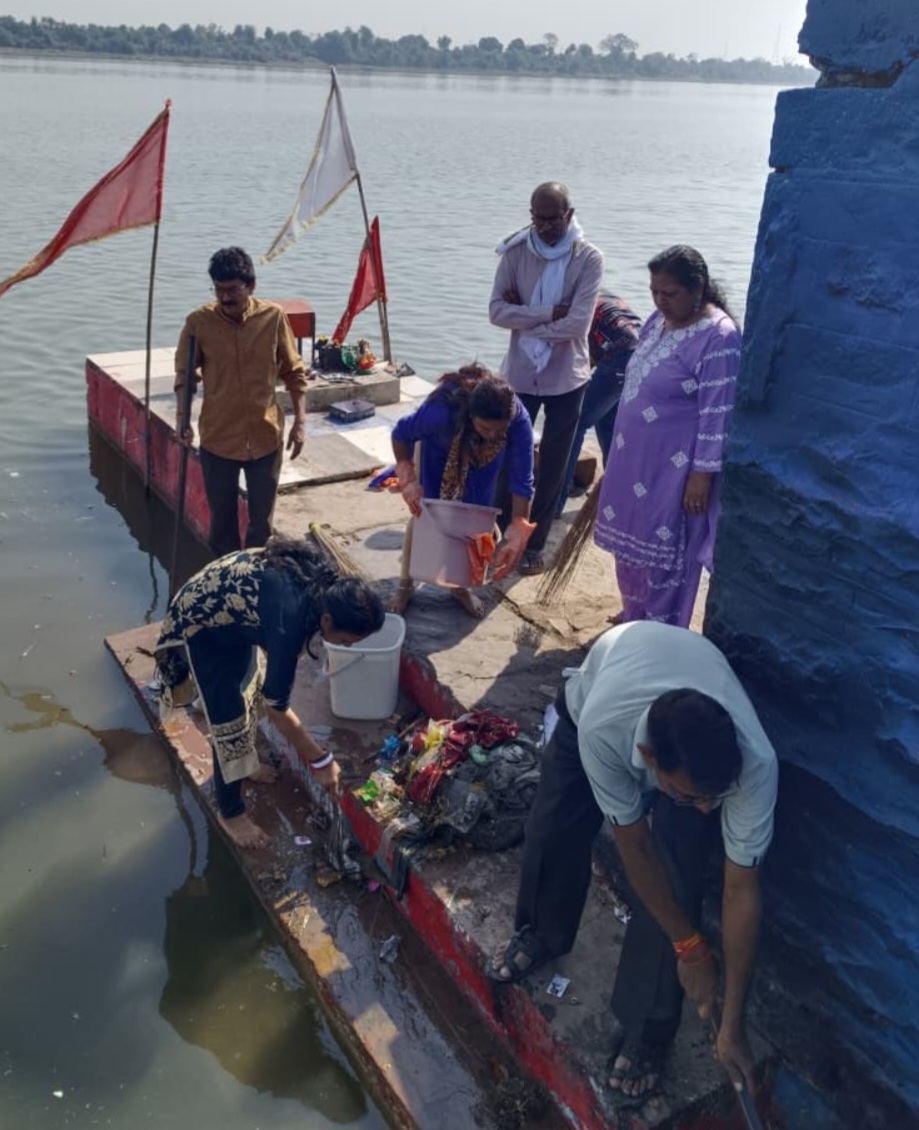 नर्मदापुरम / मां नर्मदा की महिमा, पर्यावरण संरक्षण और सामाजिक दायित्व को केंद्र में रखकर अखिल भारतीय कायस्थ समाज द्वारा चलाया जा रहा स्वच्छता अभियान लगातार प्रेरणादायक स्वरूप लेता जा रहा है। विगत तीन-चार वर्षों से समाज के सदस्यों द्वारा स्थानीय चित्रगुप्त घाट सहित अन्य घाटों पर नियमित रूप से सफाई अभियान चलाया जा रहा है। इसी क्रम में रविवार को भी समाज के पदाधिकारियों, मातृशक्ति एवं सामाजिक कार्यकर्ताओं ने नर्मदा तट पर पहुंचकर सफाई की, पूजा सामग्री, फूल-मालाएं और अन्य कचरे को बाहर निकालकर एकत्रित किया तथा उसे सुरक्षित रूप से डस्टबिन में डाला।