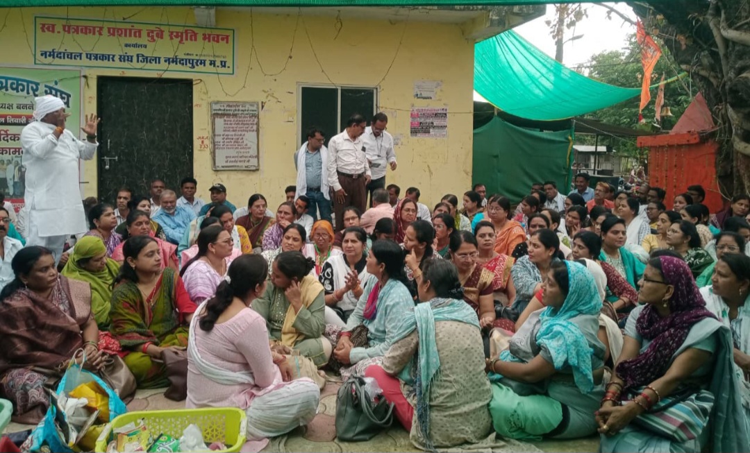 नर्मदापुरम / संयुक्त मोर्चा नर्मदापुरम ने दिनांक 08/04/2026 को पीपल चौक पर धरना दिया। विशाल रैली निकालकर तहसीलदार शक्ति सिंह तोमर को प्रदेश के मुख्यमंत्री डॉ. मोहन यादव के नाम TET के विरोध में ज्ञापन सौंपा। जिसमें हजारों की संख्या में शिक्षक महिलाएं, पुरुष साथियों ने उपस्थिति दी। के एस वाडिवा ने 11 अप्रैल 2026 को ब्लॉक स्तरीय ज्ञापन में सभी शिक्षक साथियों से उपस्थित होने की अपील जिन्हें। उन्होंने बताया कि अध्यापक संयुक्त मोर्चा प्रांतीय कार्यकारणी के आव्हान पर प्रदेश के समस्त ब्लाकों में संयुक्त मोर्चा द्वारा टीईटी परीक्षा के विरोध में एवं नियुक्ति दिनांक से वरिष्ठता के संबंध में ज्ञापन दिया जाएगा। जिसमें सभी शिक्षक उपस्थित होकर ज्ञापन कार्यक्रम को सफल बनाए। जिला स्तरीय ज्ञापन में मुख्यत उमेश ठाकुर, सुदीप जैवार अंजू नारोलिया, गजेन्द्र बछले, सुनील साहू, कैलाश पुरोहित कुंअर सिंह वाडिवा, संतोष दीवान, योगेन्द्र सिंह पटेल, शिवदुवेदी, अर्जुन रघुवंशी, जितेंद्र वैरागी, दुर्गा कुशवाहा, राजन रघुवंशी, सुरेन्द्र पटेल, ध्रुव यदुवंशी, संजय राय, राकेश तिवारी, मोहन सिंह राजपूत, परम सुख गढ़वाल, पुरुषोत्तम अहिरवार, संतोष तनेजा, प्रमोद नागर देवेंद्र खरे, सी वी वशिष्ठ, गौरी शंकर राजपूत, राजेश नागवंशी, राजकुमार बिलारे, अजय बाजपेई, यज्ञेश गौर, डी आर सुनानिया, मनोज साहू, संजीव सहारिया, प्रवीण दुबे, संजीव द्विवेदी, आर के पुरोहित, शिव प्रसाद ओंनकर, सुनील ऊईके, रोहित शुक्ला, संतोष शर्मा, सालक राम मीणा, के के पटेल, श्रीमति सुषमा मौर्य जोसेफ, मोनिका जोशी, माया मालवीय, अर्पणा जोशी, मणि तिवारी, रीता गुरु, किरण चौरे, अनीता कुंडू, मेहनिगार खान, पवित्रा रघुवंशी, सविता दुवे, सरला ऊईके, ज्योति सूर्यवंशी, रानी आम्रवंशी, वर्षा शर्मा कंचन चौधरी, साजिदा शाह आदि सैकड़ों की संख्या में महिला पुरुष शामिल हुए।