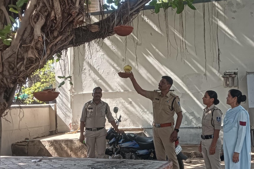 सोहागपुर / गर्मियों में पक्षियों के लिए दाना, पानी के साथ साथ आमजन के लिए भी करें शीतल पेयजल की व्यवस्था। इस गर्मी में अपने-अपने घरों अथवा कार्यालयों में पक्षियों के लिए पानी की व्यवस्था जरूर करें, पक्षियों के पीने के लिए मिट्टी से बनी चीजों का इस्तेमाल हो, जिससे जल शीतल रहे. थाना सोहागपुर परिसर में आमजन के लिए शीतल जल की व्यवस्था एवं पक्षियों के लिए उनके अनुसार बट वृक्ष के नीचे शीतल जल की व्यवस्था की गई है।