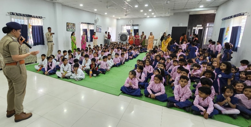 नर्मदापुरम / ईशान परिसर स्थित द चैम्प्स फन स्कूल में छोटे छोटे बच्चों को अपनी सुरक्षा हेतु जागरूक करने हेतु सेमिनार का आयोजन किया। पुलिस विभाग के सहयोग से आयोजित इस सेमिनार में पहले बच्चों को “गुड टच एवं बैड टच” पर आधारित एक जागरूकता फिल्म दिखाई गई। इसके पश्चात मुख्यवक्ता पथरौटा थाना प्रभारी श्रीमती मोनिका गौर ने बच्चों को गुड टच एवं बैड टच, डिजिटल सुरक्षा तथा आपातकालीन नंबर 112 के विषय में सरल एवं प्रभावी जानकारी विस्तार से दी। उन्होंने बच्चों को मोबाइल फोन के सीमित उपयोग, असुरक्षित वीडियो गेम एवं एपीके फाइलों से दूर रहने तथा आउटडोर खेलों को प्राथमिकता देने की महत्वपूर्ण सीख दी।