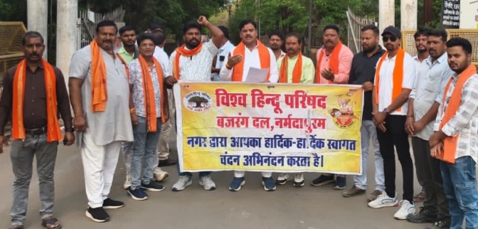 नर्मदापुरम / विश्व हिन्दू परिषद एवं बजरंग दल, नगर समिति नर्मदापुरम द्वारा देश में बढ़ती आपराधिक गतिविधियों, अवैध कब्जों एवं सामाजिक सौहार्द को प्रभावित करने वाली घटनाओं के विरोध में शनिवार दिनांक 18 अप्रैल 2026 को शाम 5:00 बजे कलेक्टर कार्यालय, नर्मदापुरम में ज्ञापन सौंपा गया।