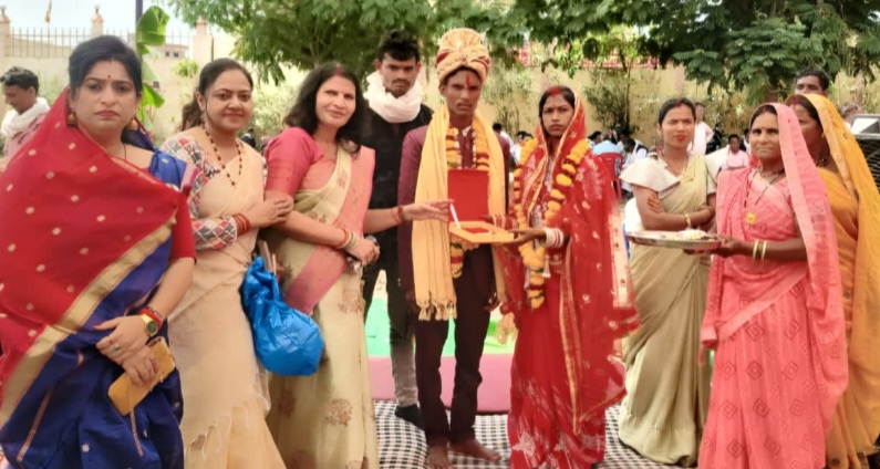 सिवनी मालवा / नगर पालिका परिषद द्वारा आयोजित कार्यक्रम मुख्यमंत्री विवाह योजना अंतर्गत आयोजित कार्यक्रम श्री राम जानकी मंदिर नंदरवाड़ा रोड में आयोजित हुआ। इस कार्यक्रम में 24 जोड़ो का विवाह संपन्न हुआ। बारात बस स्टैंड से प्रारंभ होकर राम जानकी मंदिर पहुंची राम जानकी मंदिर में सभी जोड़ों का पाणीग्रहण संस्कार गायत्री पद्धति से संपन्न किया गया। इस अवसर पर आस्था मंच द्वारा सभी नव विवाहित कन्याओं को सुन्दर हार सेट भेंट दिये एवं सभी नव विवाहित दंपतियों को आशीर्वाद देते हुए सुखमय खुशहाल जीवन की बधाई दी। इस अवसर पर आस्था मंच की नीरू राठी, प्रीति गोयल सहित आस्था मंच की महिलाएं उपस्थित थी।
