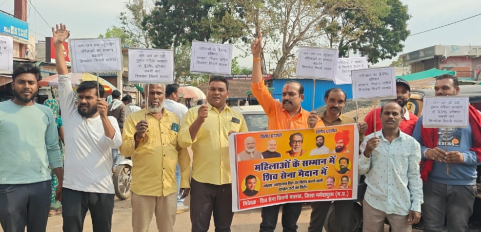 सिवनी मालवा / महिला आरक्षण बिल का विरोध कर उसे संसद में गिराना देश की महिलाओ का अपमान है। जबकि महिलाये आज सभी क्षेत्रो मे पुरुषों के बराबर भागीदारी करके देश का नाम रोशन कर रही है। विधेयक को संसद मे गिराने का शिवसेना पुरजोर विरोध करती है। इसके लिए शिवसेना द्वारा यह विरोध प्रदर्शन किया जा रहा है। नगर मे यह विरोध प्रदेश उपाध्यक्ष पिंटू राठौर के नेतृत्व में किया गया। जो शिवसेना प्रदेश प्रमुख राजीव चतुर्वेदी एवं प्रदेश प्रभारी सुरेश गुर्जर के निर्देश पर आयोजित किया गया है। पिंटू राठौर ने कहा कि शिवसेना इस विधेयक को गिराने के फैसले पर गहरा आक्रोश व्यक्त करती है यह बिल देश की महिलाओं को सशक्त बनाने, राजनीति में उनकी भागीदारी बढ़ाने और निर्णय प्रक्रिया में समानता सुनिश्चित करने के उद्देश्य से लाया गया था। बिल के तहत लोकसभा और राज्यसभा में महिलाओं को 33 प्रतिशत आरक्षण देने का प्रावधान था, जिससे देश की आधी आबादी को उचित प्रतिनिधित्व मिल सकता था। पिंटू राठौर ने आगे कहा कि इस ऐतिहासिक बिल को गिराना महिलाओं के सम्मान के खिलाफ है। शिवसेना इस मुद्दे को लेकर पूरे मध्य प्रदेश में व्यापक आंदोलन करेगी। उन्होंने यह भी कहा कि पार्टी प्रधानमंत्री नरेंद्र मोदी द्वारा लाए गए इस महत्वपूर्ण बिल का पूर्ण समर्थन करती है। नगर मे यह विरोध प्रदर्शन नगर के गणेश मंदिर से जयस्तम्भ चौक तक शिवसेनिको ने रेली निकालकर विधेयक गिराने वालो के विरोध मे नारे लगाते हुए निकली और जयस्तम्भ चौक पर पहुंचकर विरोध प्रदर्शन किया। विरोध प्रदर्शन मे शिव सेना के नाना भैया, संदेश कुचबंदिया कन्हैया कौशल, राज छत्रीय, अमित राठौर, मंगेश कुचबंदिया, राजू पहलवान, प्रकाश राठोर, समाजसेवी विजय कुचबंदिया, विजय राठौड़, विकास शुक्ला, दीनू राठौर, अशोक जगनोर, आकाश निम्बोदिया, गजा पहलवान सहित बड़ी संख्या में कार्यकर्ता उपस्थित थे।