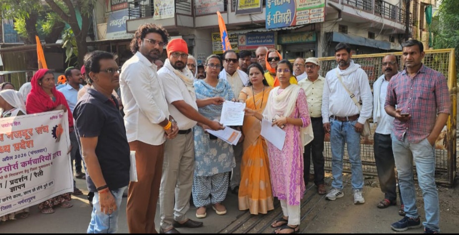 नर्मदापुरम / प्रदेश के विभिन्न विभागों में कार्यरत ठेका/आऊटसोर्स कर्मचारियों की समस्याओं के निराकरण के लिए मंगलवार दिनांक 21 अप्रैल को उनकी सत्रह सूत्रीय मांगों का मांगपत्र मुख्यमंत्री मध्यप्रदेश साशन के नाम ज्ञापन ग्रामीण तहसीलदार रुचि गोयल को सौंपा।