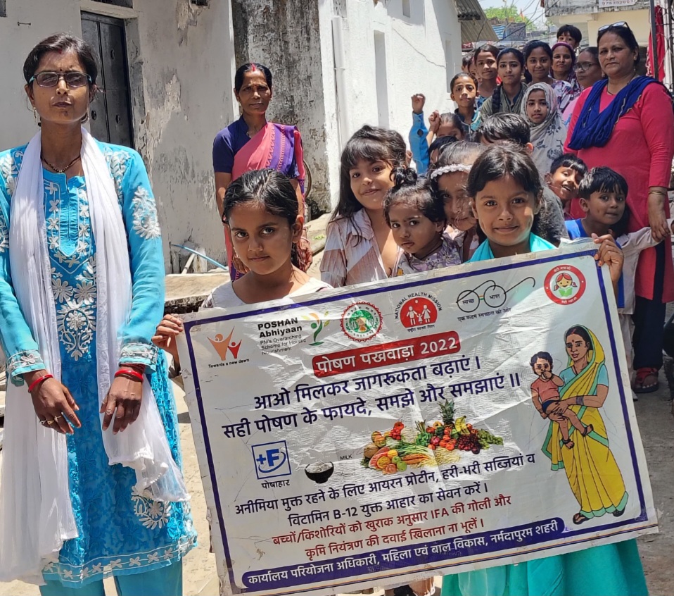 नर्मदापुरम / महिला बाल विकास परियोजना नर्मदापुरम शहरी सेक्टर 01 के सभी केंद्रों में पोषण पखवाड़ा आयोजन एवं नारी शक्ति वंदन कार्यक्रम का आयोजन किया गया। केन्द्र क्रमांक 21 में पर्यवेक्षक श्रीमती श्वेता पटवा मिश्रा द्वारा महिलाओं से आज की गतिविधि अंतर्गत जन सहयोग से आंगनवाड़ी में सहयोग करने हेतु प्रेरित किया गया एवं थीम पर चर्चा की गई । श्रीमती शिखा प्रजापति द्वारा केंद्र के लिए कुर्सी भेंट की गई। साथ ही नारी शक्ति वंदन की गतिविधियों का आयोजन के रैली निकाली गई। कार्यक्रम में महिला बाल विकास विभाग पर्यवेक्षक श्रीमती श्वेता पटवा मिश्रा, वार्ड की समस्त महिला हितग्राही, मात्रसहयोगिनी अध्यक्ष श्रीमती शिखा प्रजापति, कार्यकर्ता श्रीमती दुर्गा पटेल, अलका तिवारी, तस्लीम बेग, अनीता वर्मा एवं वार्ड की महिलाएं उपस्थित रहे।