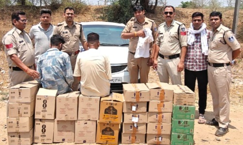 नर्मदापुरम / दिनाँक 24/04/26 को मुखबिर द्वारा थाना इटारसी में सूचना मिली कि एक सफेद रंग की टाटा कार में कुछ लोगो के द्वारा बैतूल मार्ग से होते हुए भारी मात्रा में अवैध रुप से शराब भरकर इटारसी में खपाने के उद्देश्य से लाई जा रही। जिसे तुंरत पहुँचकर पकड़ा जा सकता है। पूर्व में ही अवैध शराब को लेकर सख्ती करने संबंधी पुलिस अधीक्षक नर्मदापुरम द्वारा दिए गए आदेश, श्रीमान अति.पु. अधीक्षक से प्राप्त निर्देश एवं अनुविभागीय अधिकारी के मार्ग दर्शन में उक्त सूचना पर थाना इटारसी द्वारा त्वरित संज्ञान लेते हुए टीम का गठन किया गया। गवाहो के साथ पथरोटा पुलिया के पास संदेहियो का इंतजार किया गया जो कि एक सफेद रंग की कार क्रमांक एम पी 04 सी डब्ल्यू 0952 की इटारसी की ओर आती नजर आई, कार चालक द्वारा पुलिस को देखकर कार को घाटली की ओर जाने वाले कच्चे मार्ग की ओर मोड़ दी। परंतु पुलिस स्टाफ द्वारा उक्त कार को घेरकर पकड़ लिया गया। कार चालक से पूछताछ पर अपना नाम अब्दुल जाहिद अंसारी पिता अब्दुल अजीज उम्र 32 वर्ष निवासी भाट मोहल्ला इटारसी एवं बगल में बैठे व्यक्ति ने अपना नाम हेमंत राजपूत पिता प्रेमसिंह राजपूत उम्र 54 वर्ष निवासी गांधी नगर इटारसी का होना बताया, कार की तलाश लेने पर उसमें देसी, विदेसी शराब की कुल 26 पेटियाँ प्राप्त हुई। जिसमें शराब की मात्रा 241.200 लीटर होनी पाई गई। जिस पर पुलिस द्वारा कार सहित समस्त शराब जप्त कर ली गई है, जो कि कुल मशरुका 6,45,000/- रुपयो का जप्त हुआ है। आरोपियो द्वारा पूछताछ पर उक्त जप्तशुदा शराब संदीप मिहानी निवासी भाट मोहल्ला इटारसी की होनी बताई गई है, जिसे प्रकरण में आरोपी बनाया गया है, शेष आरोपी की पता तलाश की जा रही है। उक्त कार्यवाही में विशेष भूमिका थाना प्रभारी गौरव बुंदेला, उनि विपिन पाल, प्र. आर. मनमोहन अहिरवार, प्र. आर. रामनारायण, आर. महेन्द्र गुर्जर, आर. साकिर, आर. बंसत आर. अनिल पाल आर. अंकित गौर की रही।
