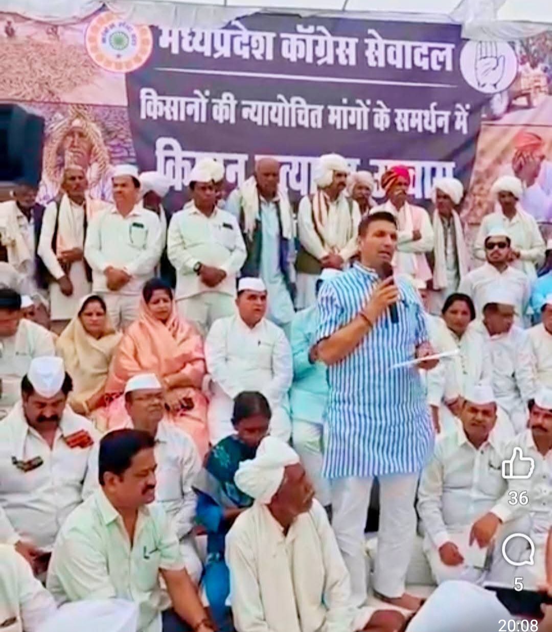 नर्मदापुरम / राजधानी भोपाल में किसानों की समस्याओं को लेकर मध्य प्रदेश कांग्रेस सेवा दल द्वारा चलाया जा रहा दो दिवसीय किसान सत्याग्रह उपवास शुक्रवार को समाप्त हो गया। उनके साथ सेवा दल के 35 साथियों ने लगातार दो दिनों तक भूख हड़ताल कर किसानों की समस्याओं को लेकर आवाज बुलंद की।